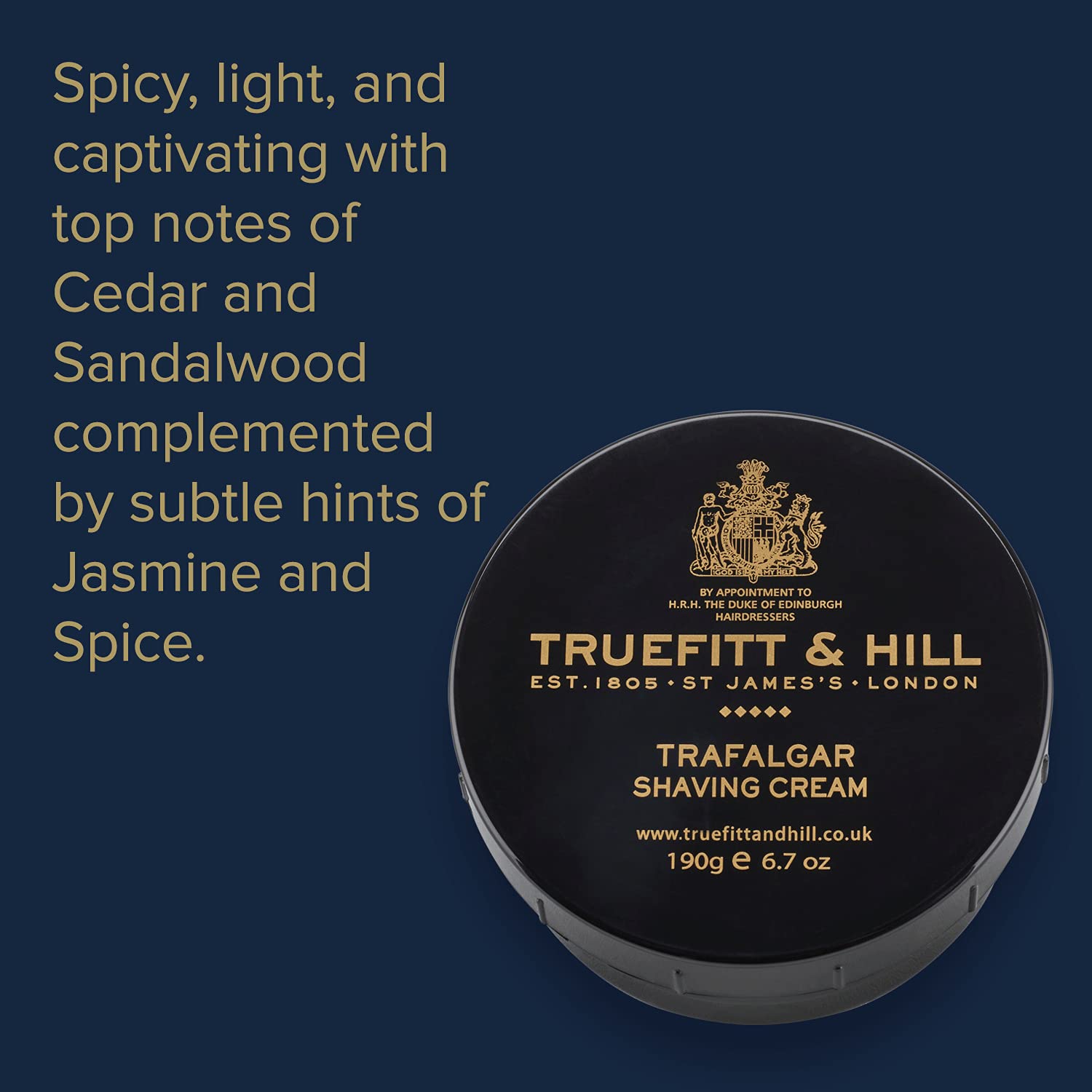 Truefitt & Hill Shaving Cream Bowl - Trafalgar - Premium Glycerin-Based Lather, Smooth Glide, and Hydration for a Luxurious Shave - 6.7 oz