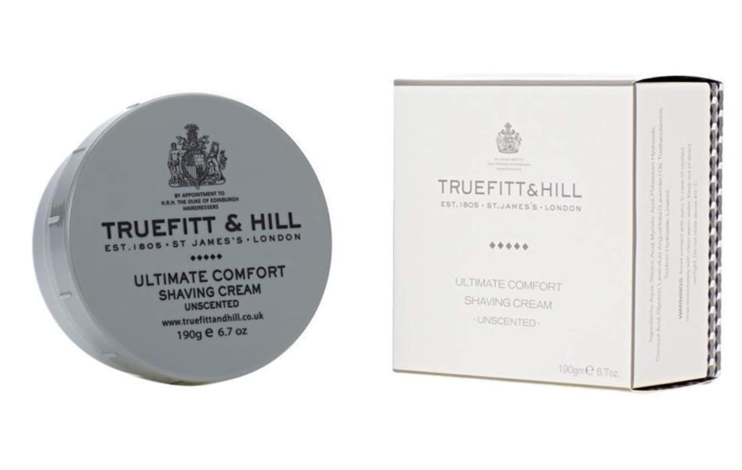 Truefitt & Hill Shaving Cream Bowl - Ultimate Comfort - Premium Glycerin-Based Lather, Smooth Glide, and Hydration for a Luxurious Shave, No Added Fragrance - 6.7 oz.