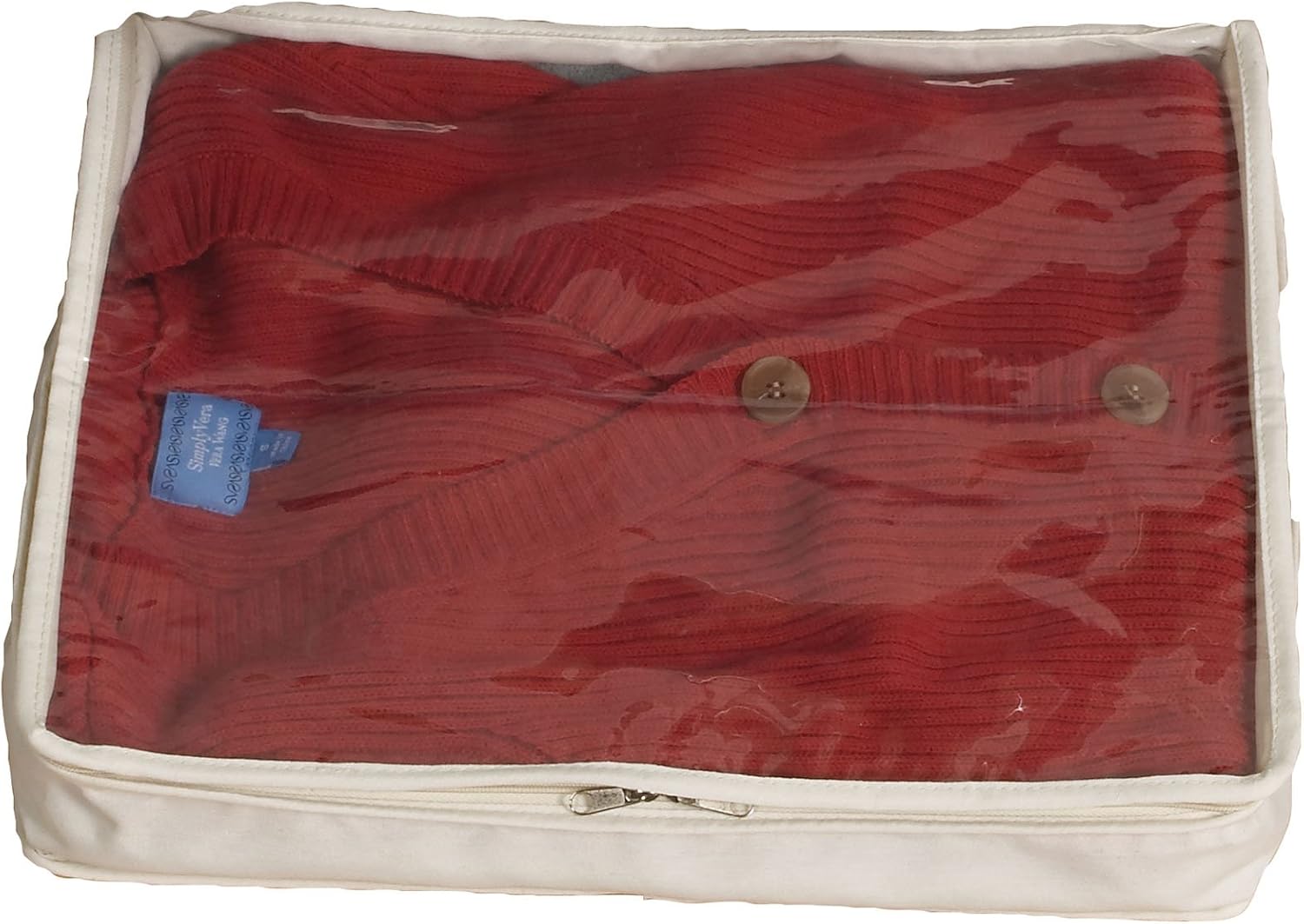 Household Essentials Lightweight Canvas Sweater Bag 2 Pack, Durable Canvas with Clear PEVA Top, 3-Sided Zipper, Perfect Fit for Shelving or Under the Bed