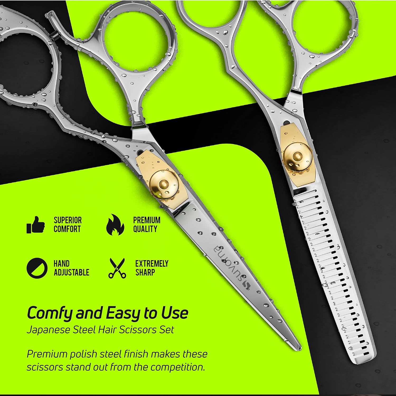 Suvorna Hair Cutting Scissors and Thinning Shears Set - Professional Hair Scissors Set - Barber Supplies and Accessories - Made with 420C Japanese Stainless Steel and Extremely Razor Sharp Edge.