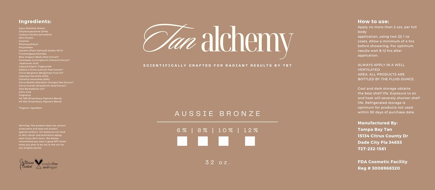 Tan Alchemy, Aussie Bronze 4 bottles of 32 oz, 12%, Dark DHA Sunless Airbrush Spray Tanning Solution (1 Gallon)