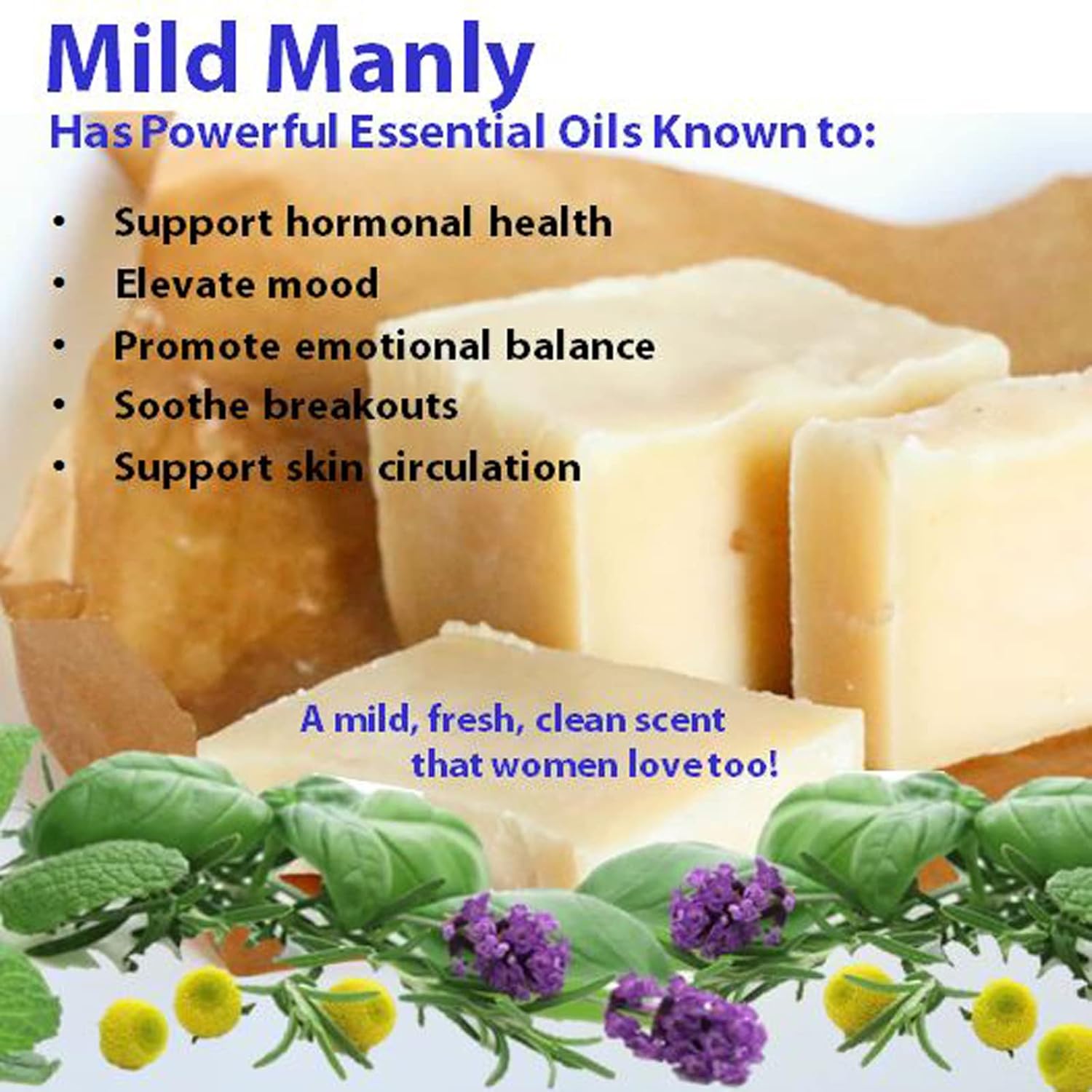 - Mild & Manly – A fresh scent that women also love! Pimply, wrinkly, or scaly skin can decrease your confidence. Soothe and smooth your skin and self-assurance with your body balm and hand cream featuring skin-repairing essential oils.