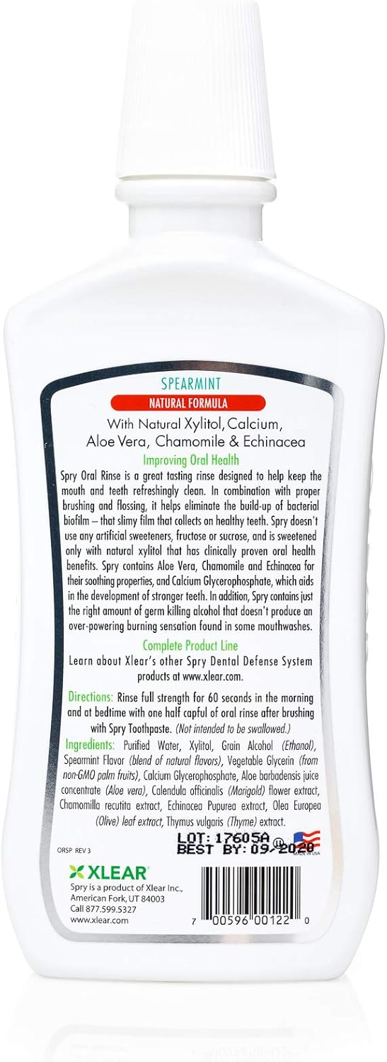 - ORAL CARE DEFENSE SYSTEM: Spry mouthwash is a great tasting fresh breath rinse and wash designed to keep your mouth and teeth refreshingly clean. When used in combination with proper brushing and flossing, Spry mouth rinse helps to eliminate the build-up of biofilm. Our oral rinse is formulated with just the right amount of natural herbal ingredients so you wonโt experience an over-powering burning sensation with Spry mouth wash for adults and kids.