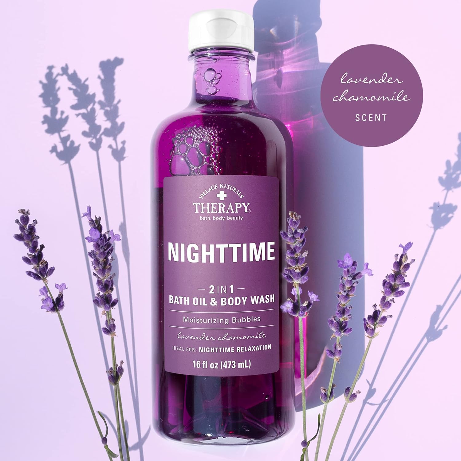 - THERAPEUTIC BATHING EXPERIENCE: Getting a good night’s sleep is important for everyone, but sometimes it can be hard to relax before bed. Our Nighttime Relief Bath Oil & Body Wash contains a powerful blend of Essential Oils and Extracts that will help relax your mind and ease sore, overworked muscles. Experience the joy of a relaxing nighttime bath or shower with the soothing fragrance of Lavender and Chamomile.