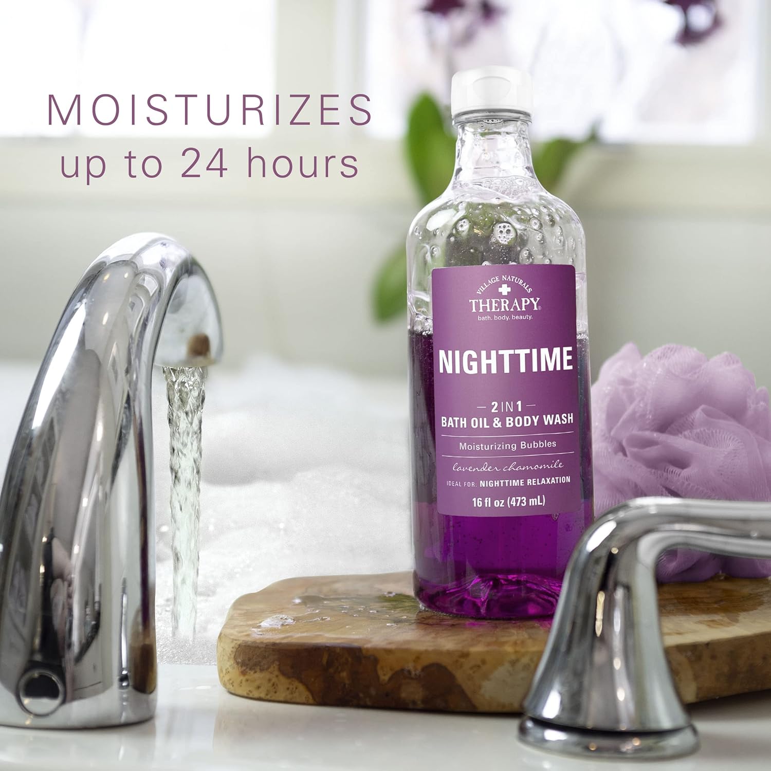 Village Naturals Therapy, Foaming Bath Oil and Body Wash, Nighttime Relief, 16 oz, Pack of 2