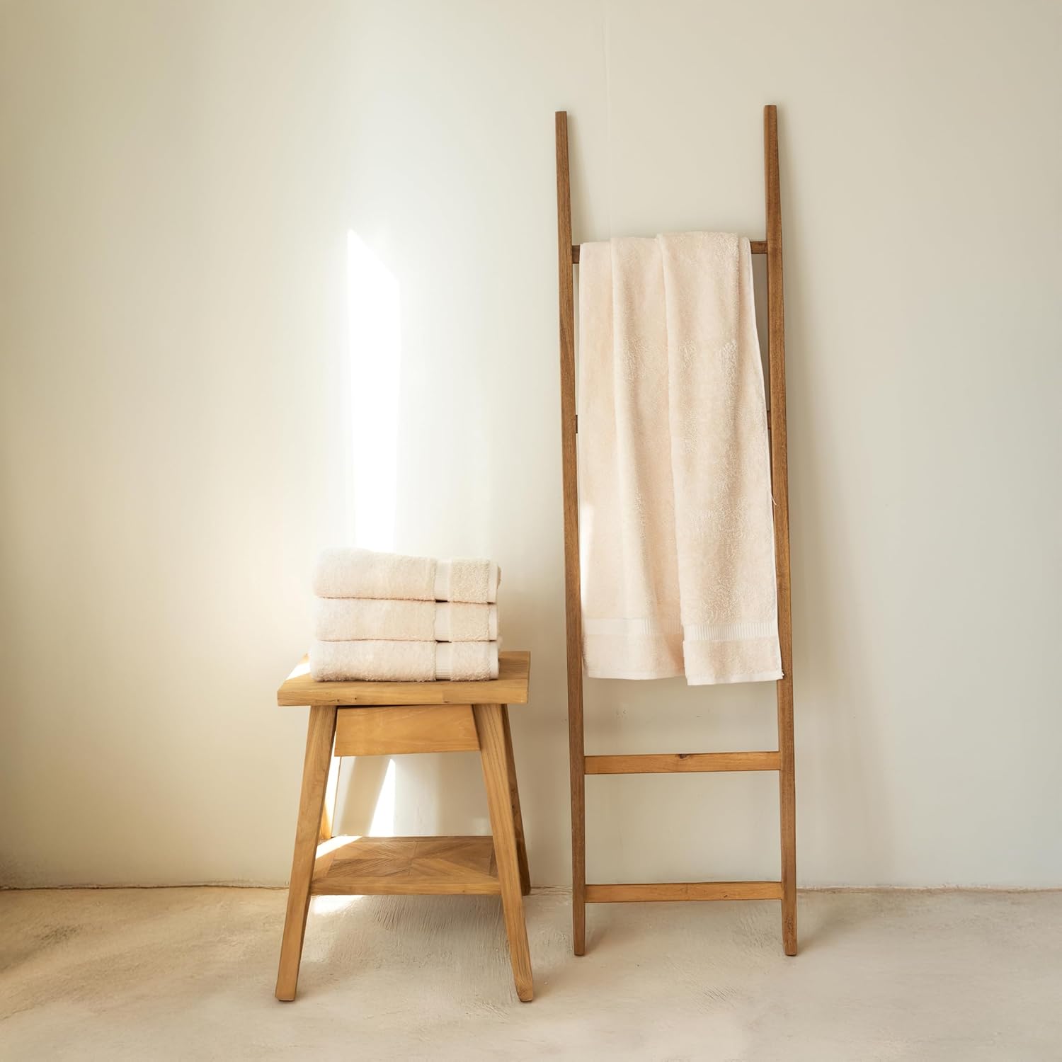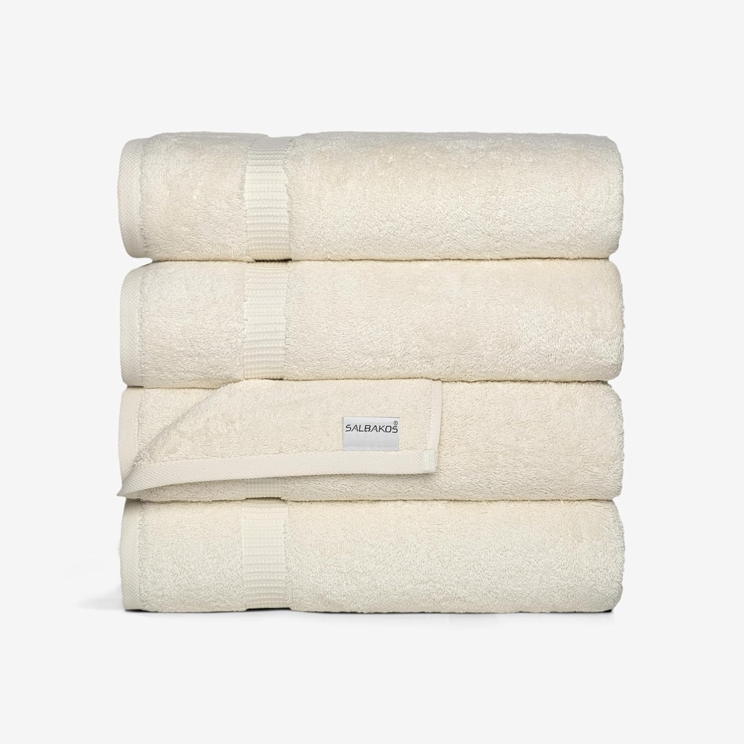 SALBAKOS 100% Turkish Cotton Bath Towel Set of 4 27x54 inch | Heirloom Quality | Hotel & Spa Collection | Ultra Soft, Super Absorbent, Long Lasting Bath Towels | Made in Turkey (Ivory, 4 Bath Towels)