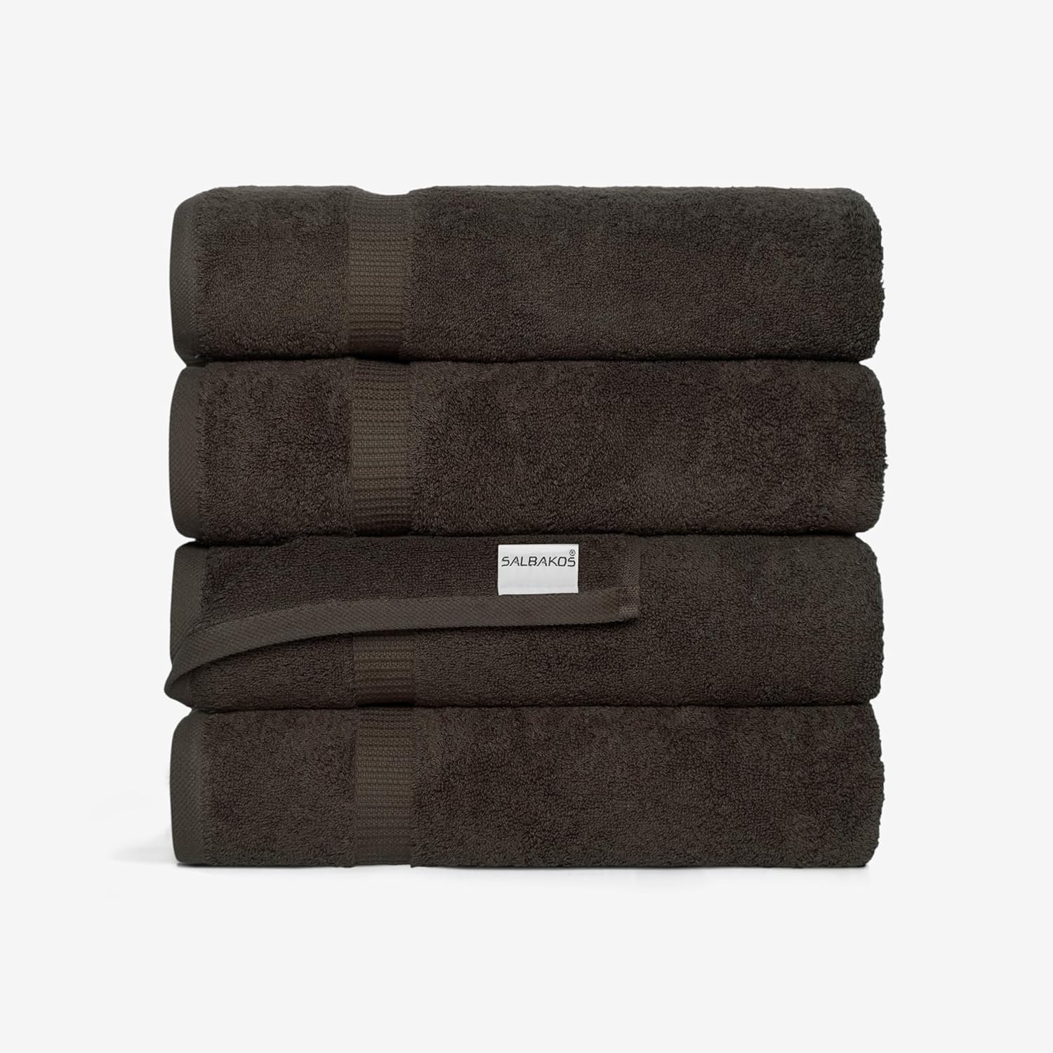 SALBAKOS 100% Turkish Cotton Bath Towel Set of 4 27x54 inch | Heirloom Quality | Hotel & Spa Collection | Soft, Super Absorbent, Long Lasting Bath Towels | Made in Turkey (Chocolate, 4 Bath Towels)