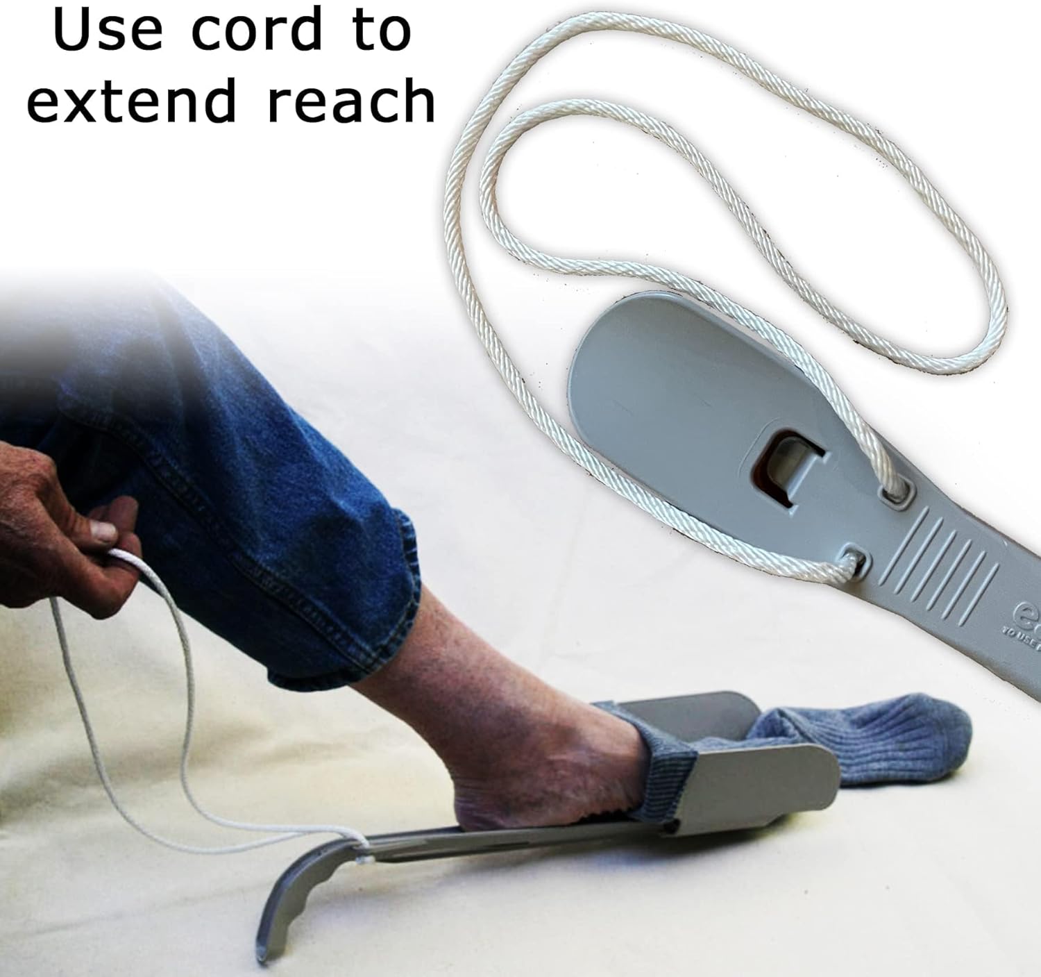 - DOUBLES AS A SHOEHORN: The Sock Horse can also assist in helping put shoes on your feet. Once you’ve finished putting on your socks, you can then use the aid to slip on your shoes
