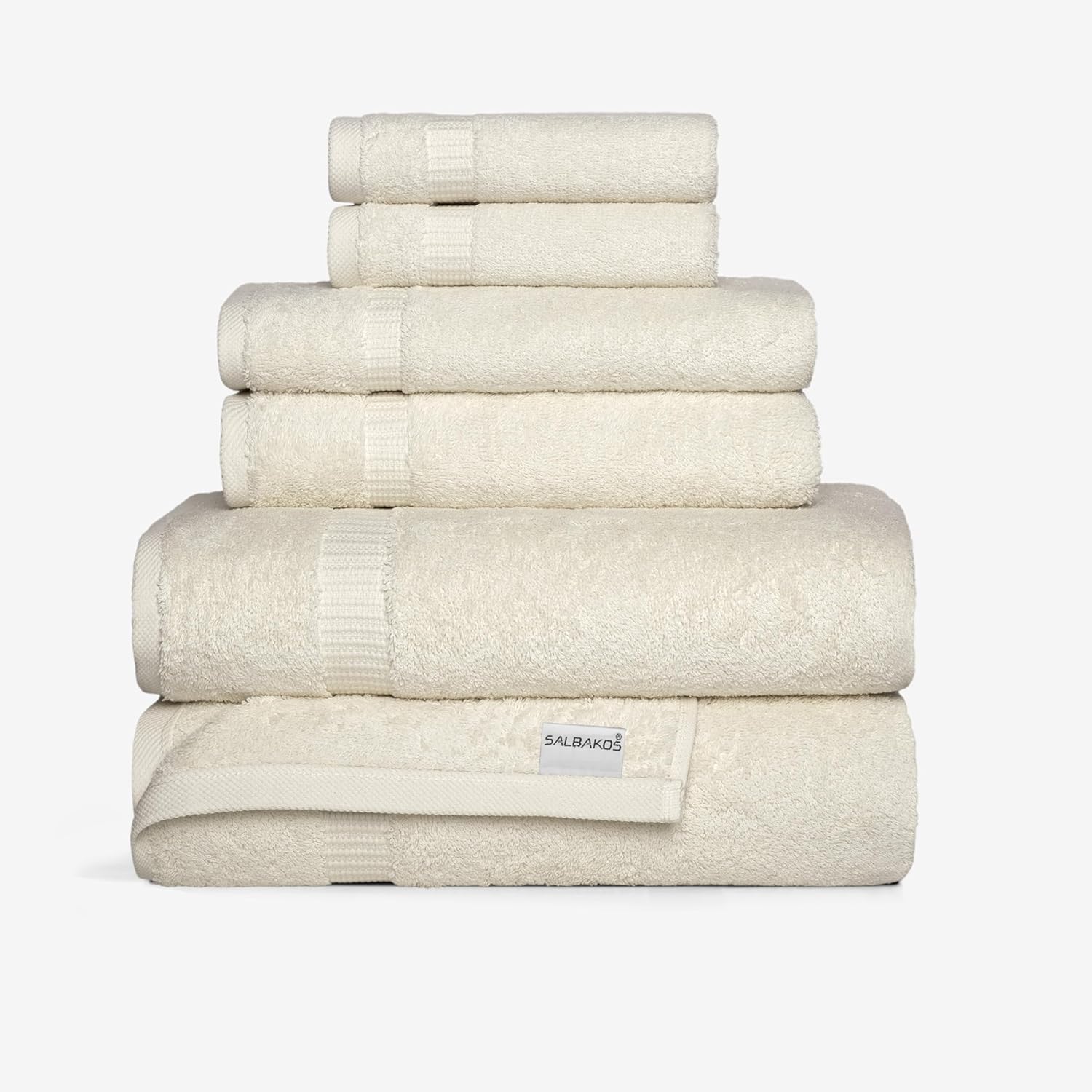 SALBAKOS 100% Turkish Cotton 6-Piece Towel Set | Heirloom Quality Hotel & Spa Collection | Soft, Super Absorbent 2 Washcloth, 2 Hand, 2 Bath Towel Sets | Made in Turkey (Ivory, 6 Piece Towel Set)