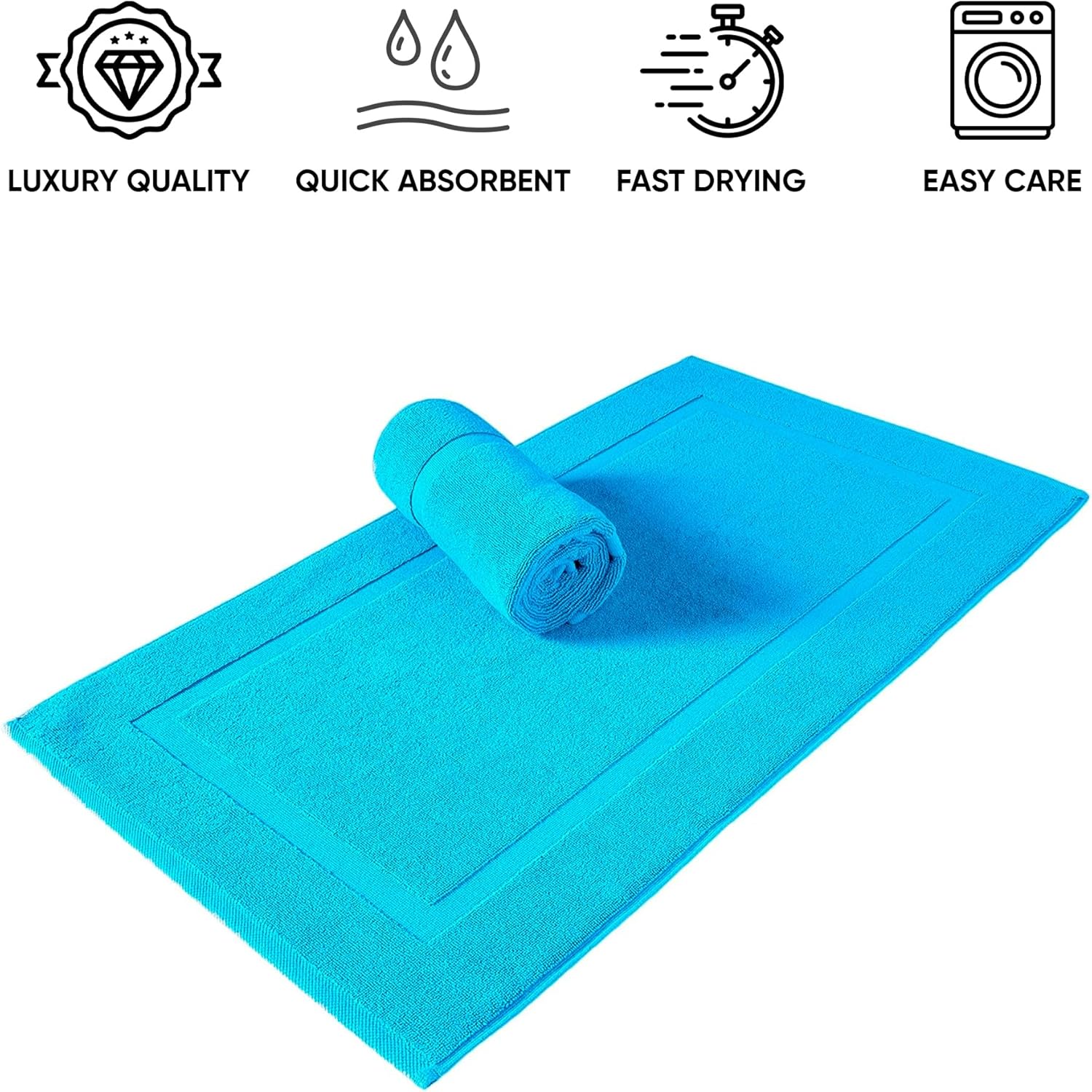 - ✔️ ULTRA-ABSORBENT FOR A DRY, SAFE FLOOR: Engineered to absorb water instantly upon contact, these mats keep your bathroom floor dry and clean. The superior breathability of Turkish cotton allows them to dry much faster than synthetic mats, helping to prevent mildew. The dense cotton weave provides a secure and stable footing on dry floors.