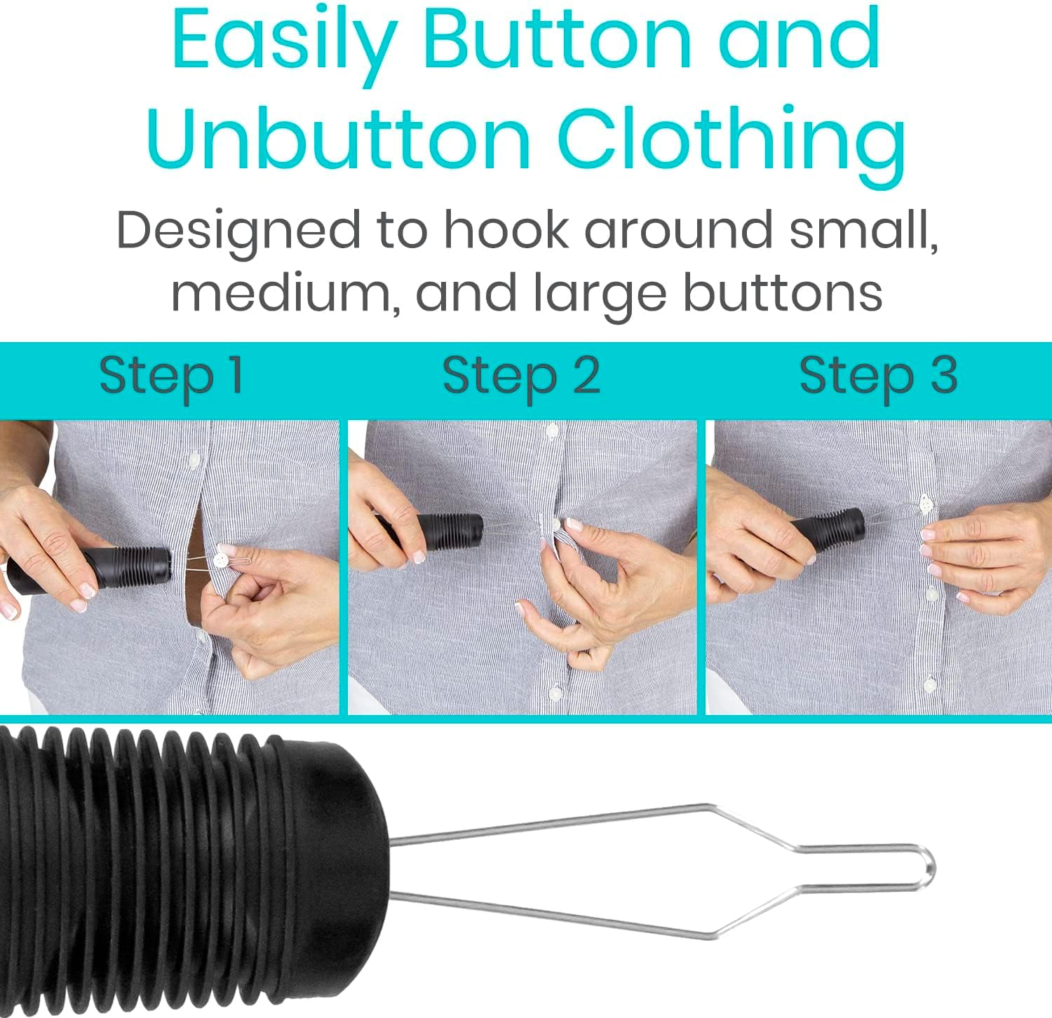 Vive Button Hook with Zipper Pull - Dressing Helper Assist Tool for Arthritis - One Hand Shirt & Coat Buttoning Aid, Disability, Handicapped, Seniors, Elderly - Limited Dexterity, Wide Grip Handle