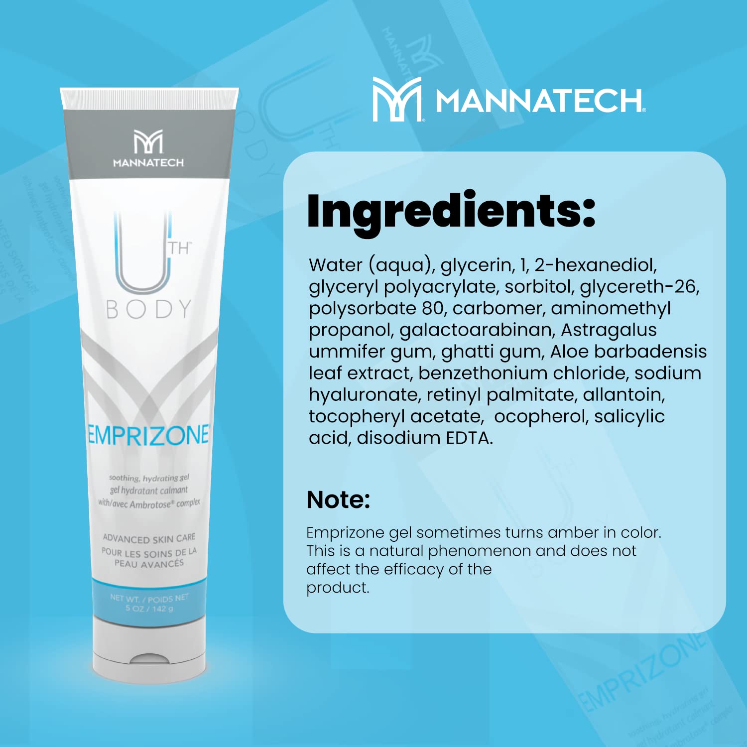 - Comes with a unique formula this skin and face moisturizer significantly reduces redness due to irritation. Mannatech's Emprizone gel consists of Ambrotose Aloe Vera gel for face & body hydrating gel.