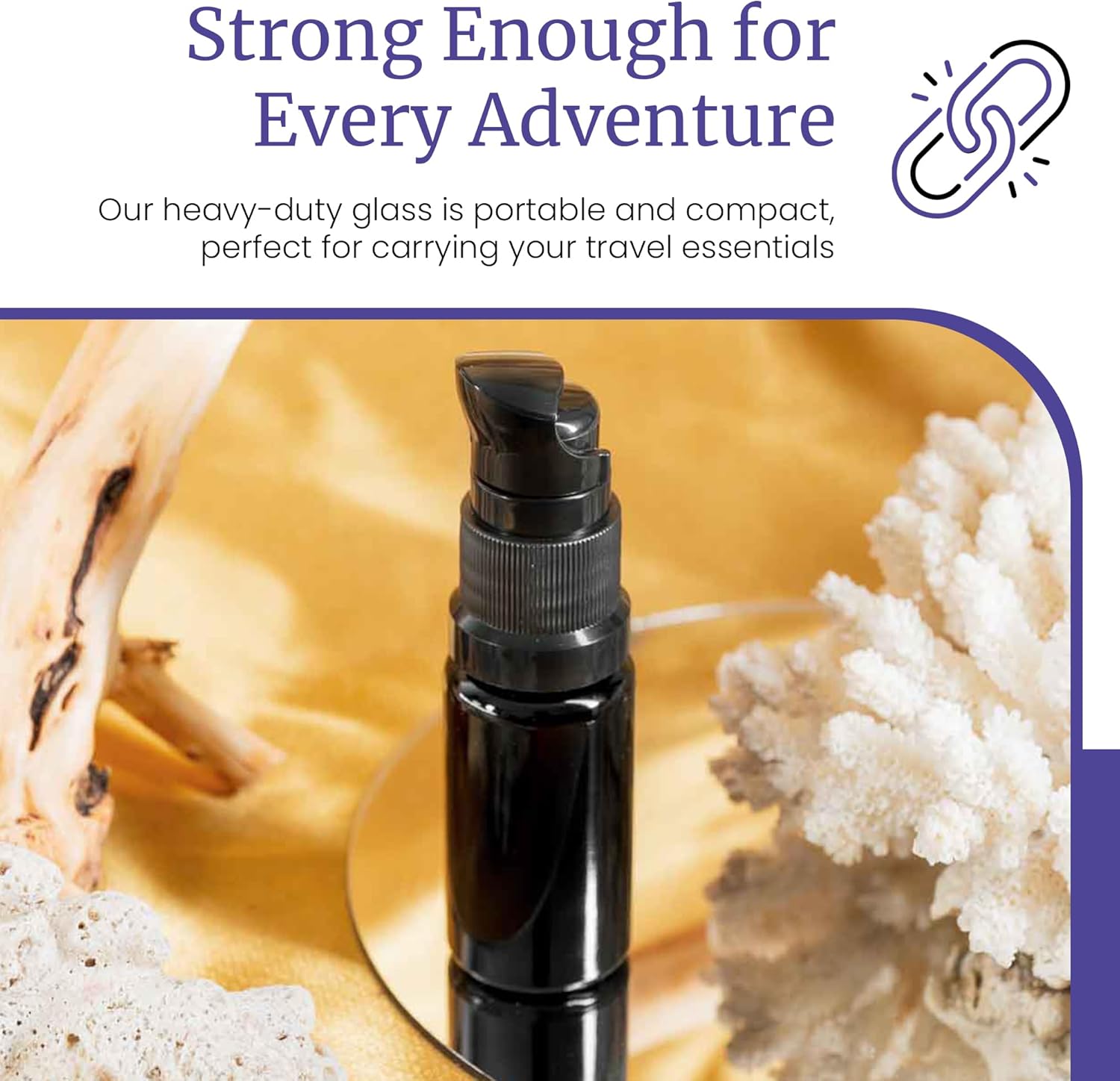 Infinity Jars 10 Ml (0.34 fl oz) Refillable Ultraviolet Black Glass Pump Bottles Leak-Proof Travel Containers for Toner, Sanitizer, Beard Oil, Hair Serum, Essential Oils 10-Pack