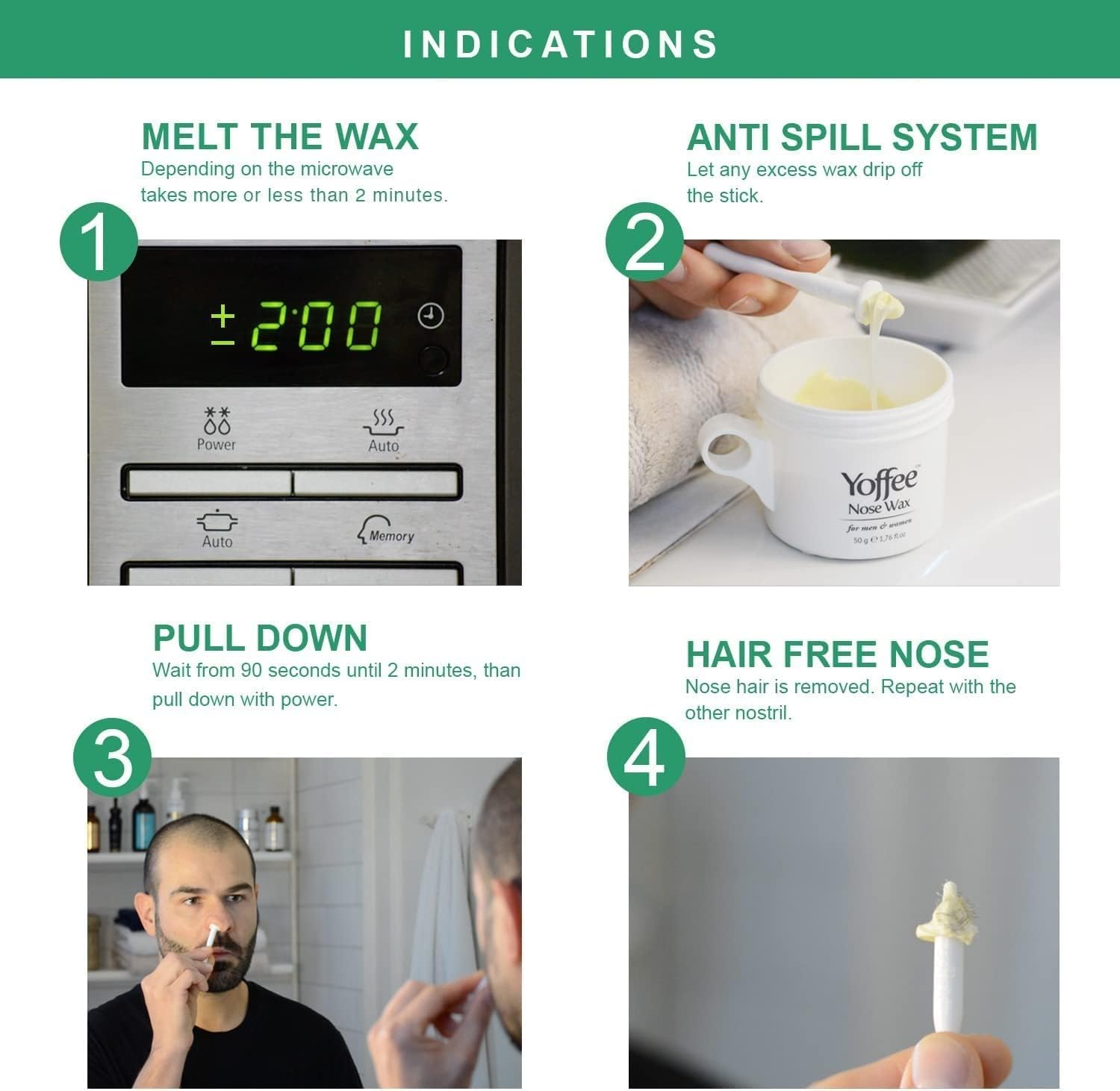 - COMPLETE WAX KIT β Includes everything you need for hair removal: wax, applicators, and easy-to-follow instructions. 10 hair removal sticks, designed by Yoffee to protect friendly nasal hairs and target only the terrifying danglers that loiter around the nasal entrance.