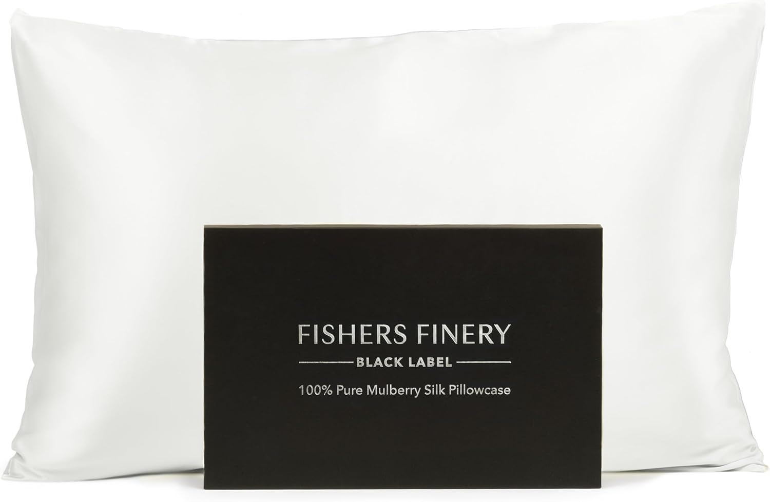 Fishers Finery 30mm 100% Pure Mulberry Silk Pillowcase, Quality Tested (White, King)