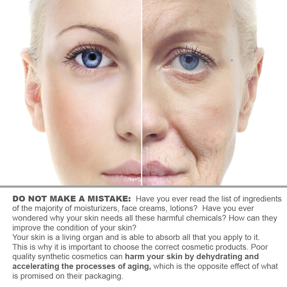 - DO NOT MAKE A MISTAKE: Your skin is able to absorb all that you apply to it. This is why it is very important to choose the correct and safe cosmetic products. Poor quality synthetic cosmetics can harm your skin, dehydrate, accelerate processes of aging. When we were developing our Plant-Based Moisturizer formula - we were thinking about the health of your skin as our first priority.