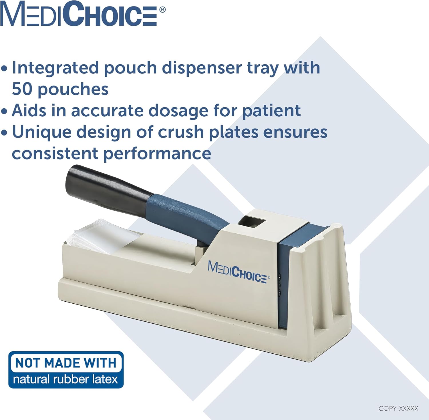 MediChoice Hand Operated Heavy-Duty Pill Crusher System Crushes Multiple Tablets at Once Compounding Medications Children Elderly Pets PLC5000 +50 Pill Pouches