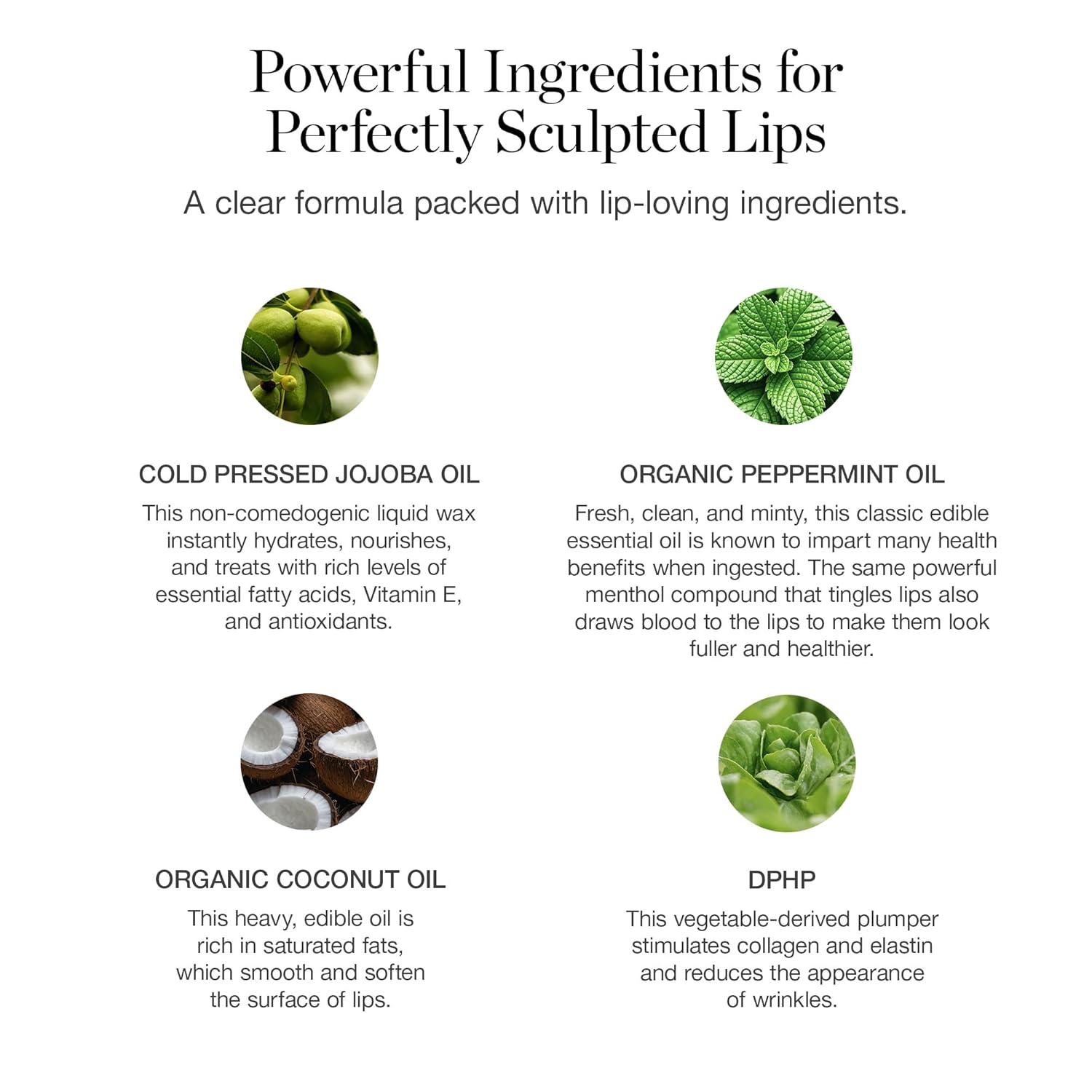 Ogee Sculpted Lip Oil - Lip Stain Made with 100% Organic Coconut Oil, Jojoba Oil, and Vitamin E - Best as Lip Balm or Overnight Lip Treatment - CLEAR
