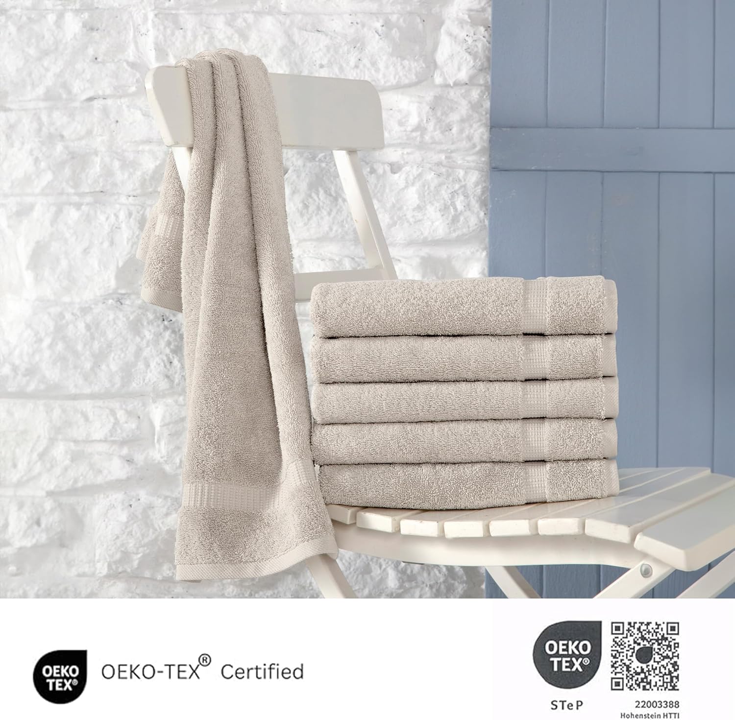 SALBAKOS 100% Turkish Cotton Hand Towel Set of 6 16x30 inch | Heirloom Quality | Hotel & Spa Collection | Ultra Soft, Super Absorbent, Long Lasting Hand Towels | Made in Turkey (Stone, 6 Hand Towels)