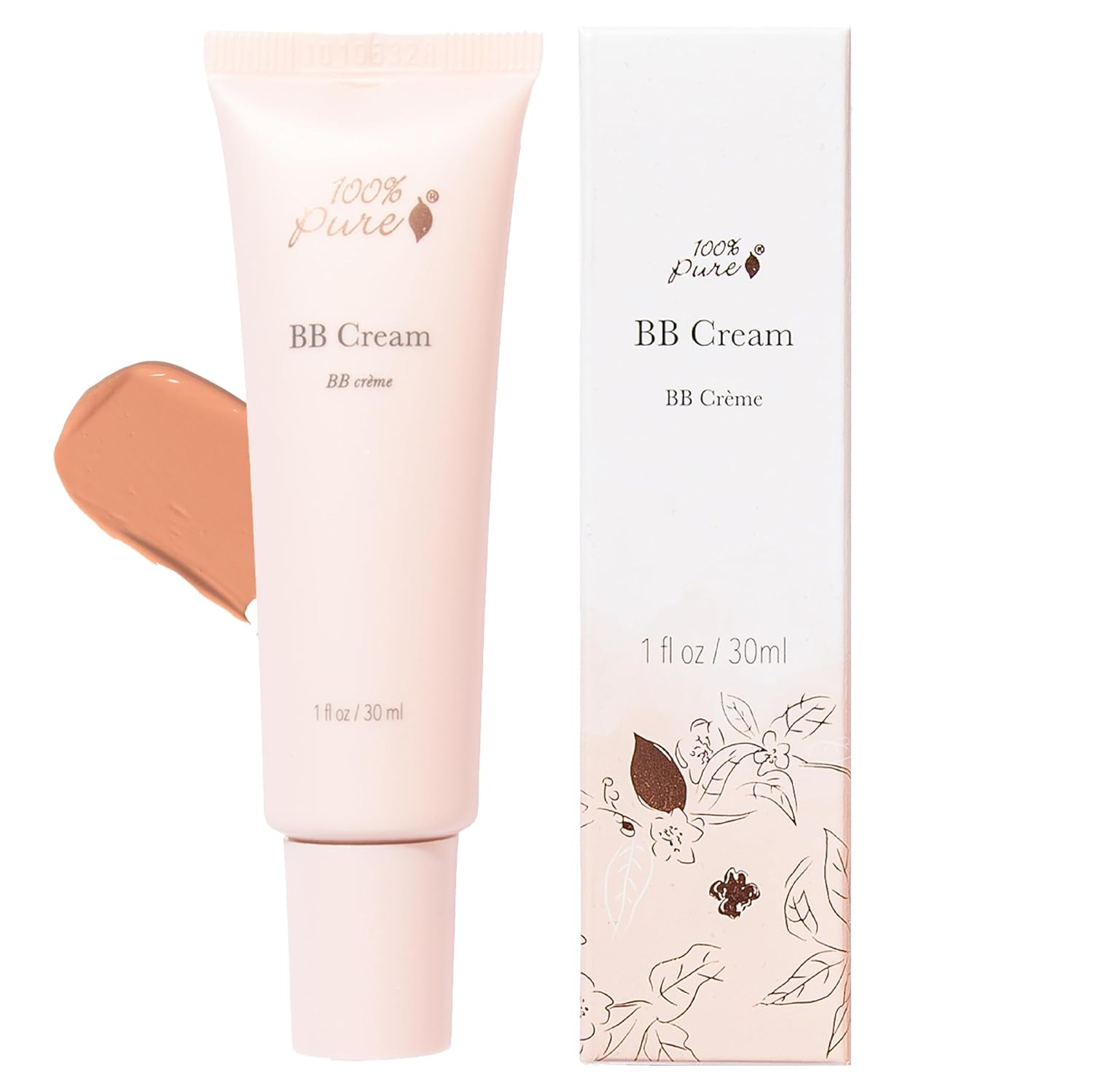 100% PURE BB Cream Shade 20 Aglow Full Face Coverage Skin Care & Glow - All-In-One Primer Concealer & Foundation Makeup - Shimmery, Dewy Youth Medium Color w/Warm Undertone - Vegan - 1 Fl Oz