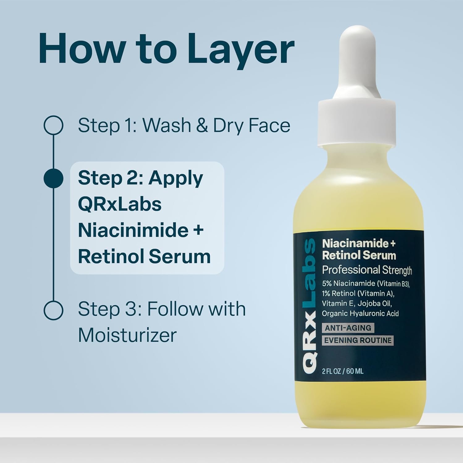 QRxLabs 5% Niacinamide Serum with 1% Retinol & Alpha Arbutin - 2 Fl Oz - Anti-Aging Retinol Serum for Face, Pore Minimizer & Wrinkle Reducer