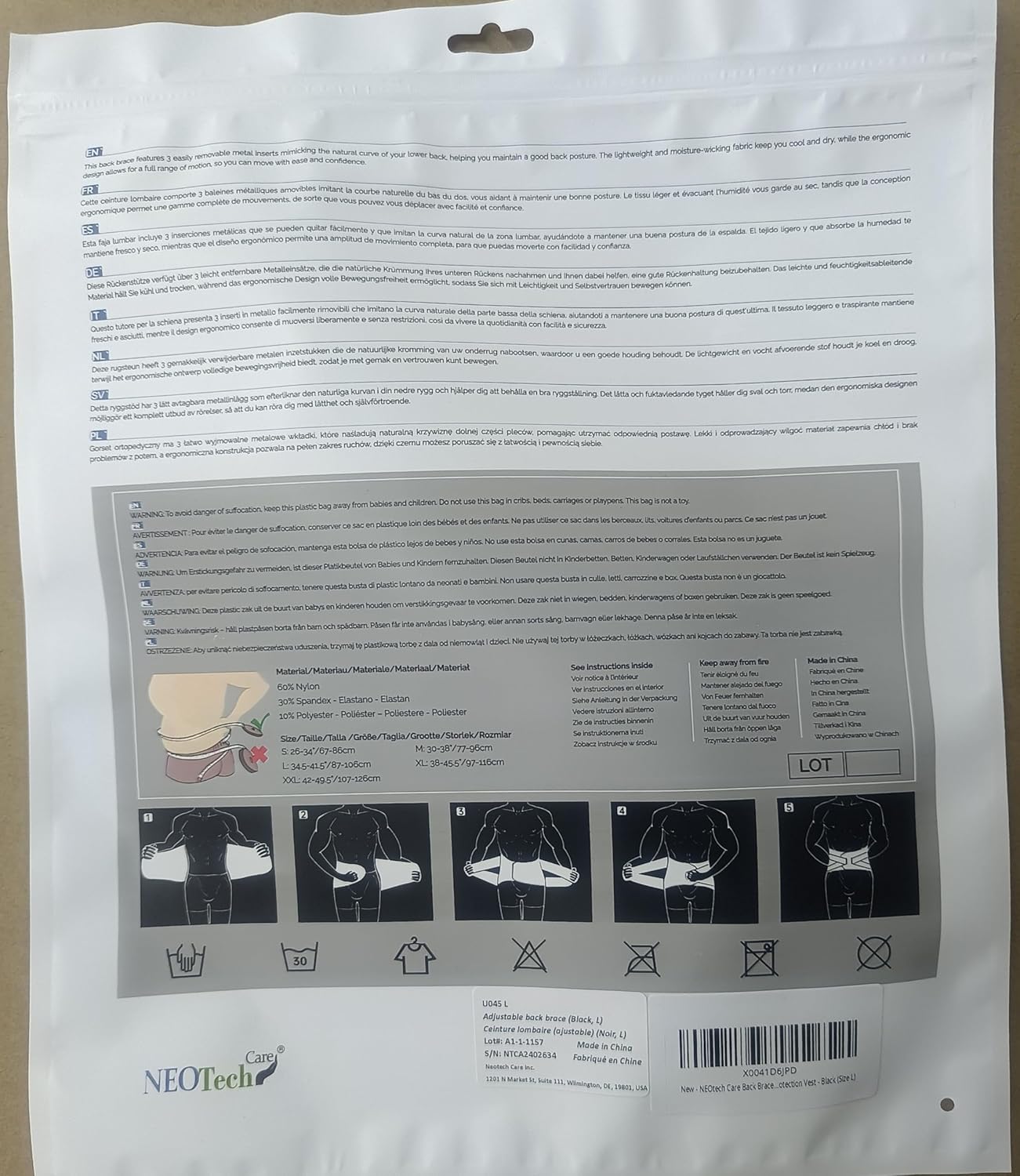 - Lightweight and ergonomic design for unrestricted movement with the back support brace. Perfect for lifting and everyday activities.
