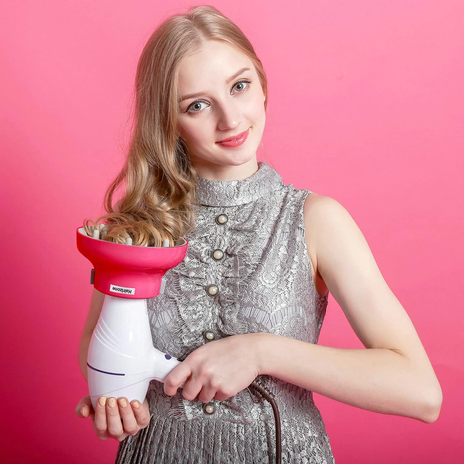Hairizone Universal Hair Diffuser Adaptable for Blow Dryers with D-1.7-Inch to 2.6-Inch for Curly or Wavy Hair, Roseo