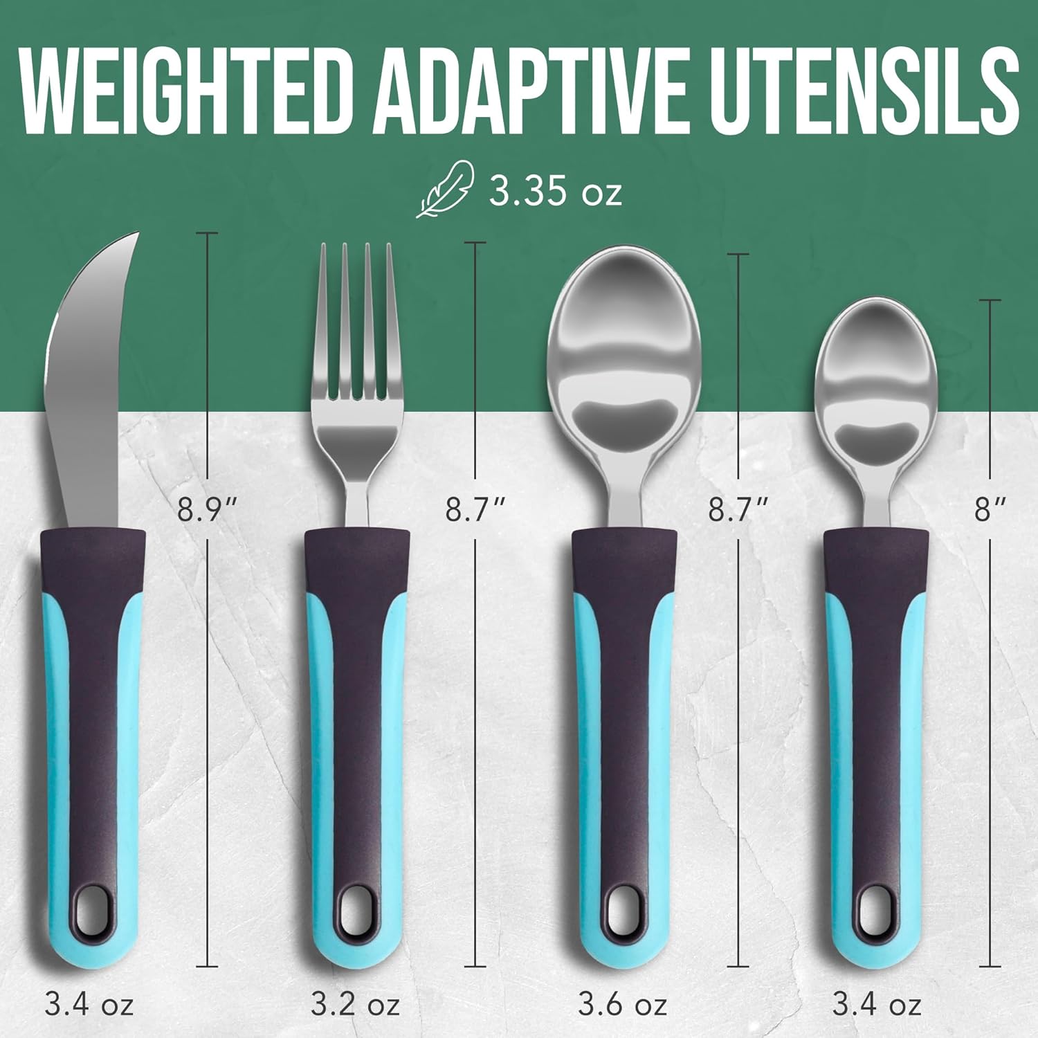 - Large easy-grip handles: These adaptive weighted silverware make it easier than ever to hold utensils for individuals who are elderly or suffer from arthritis, hand tremors, and trembling hands. Itโs ideal for arthritis hand therapy since it ensures minimum spillage and a stress free dinner experience.