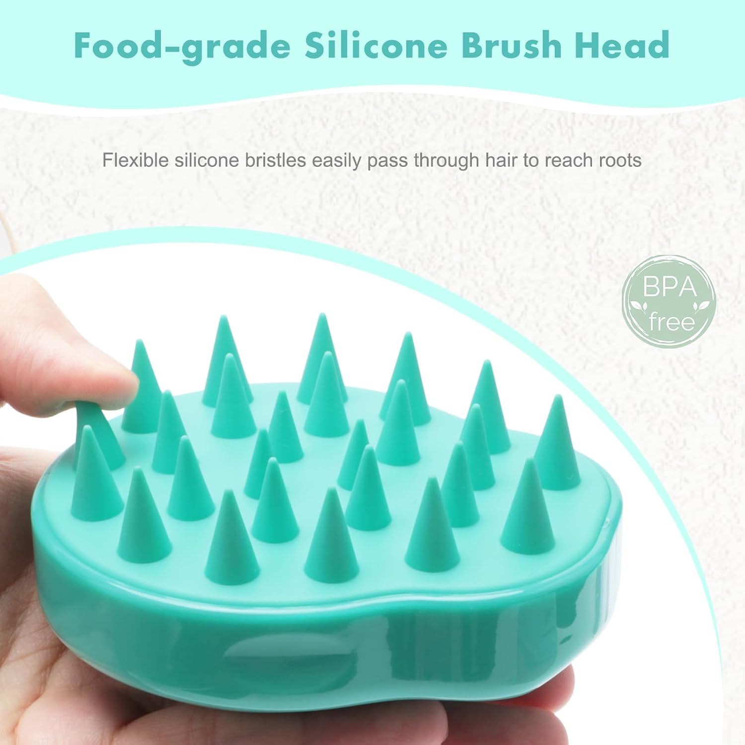 FREATECH Massager Shampoo Brush with Soft Silicone Bristles for Scalp Care, Shower Hair Scalp Scrubber Exfoliator for Dandruff Removal and Hair Growth, Wet & Dry for Men, Women and Kids, Green