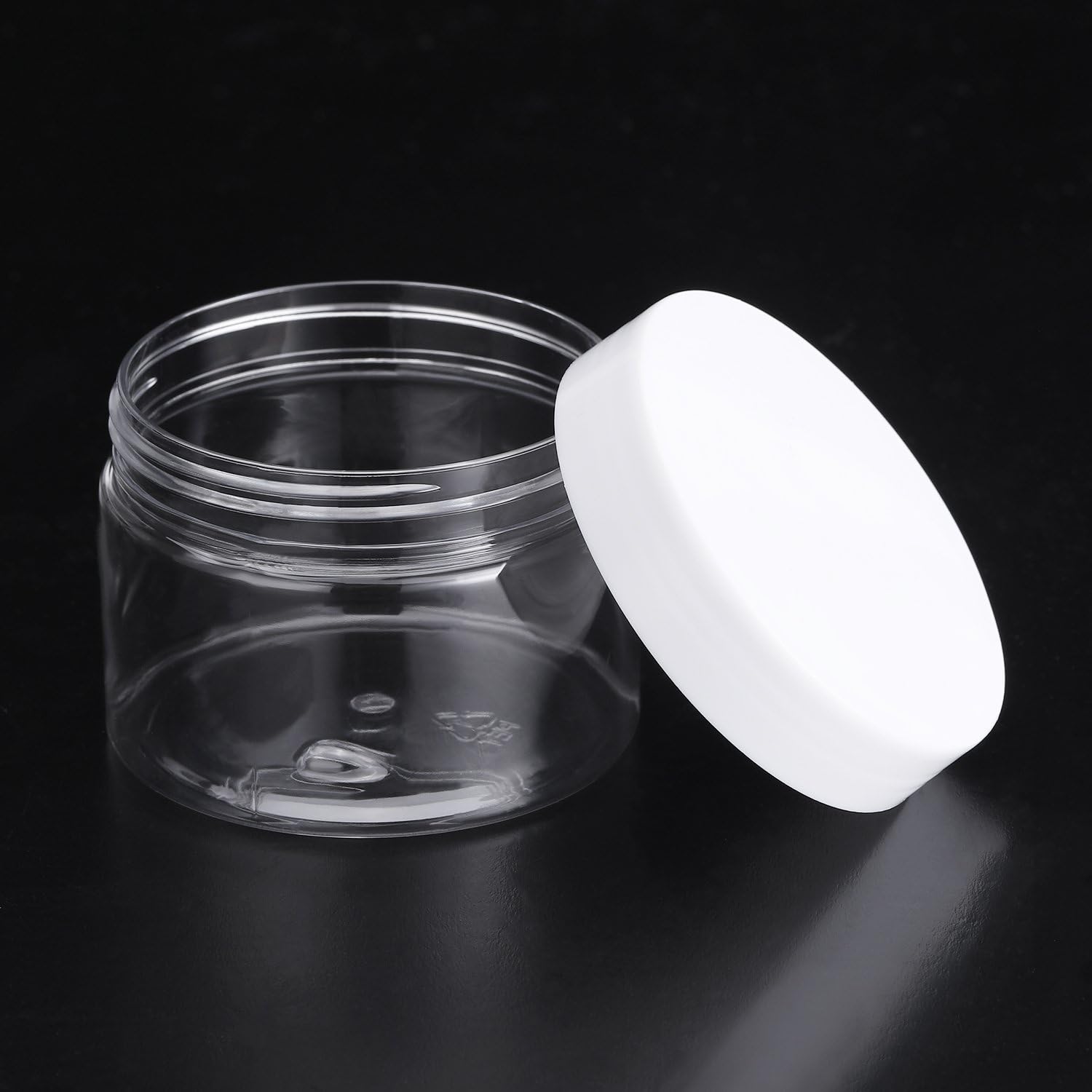 SATINIOR 12 Pack 6 oz Plastic Container Jars with Lids Round Clear Travel Cosmetic Container Jars for Toiletries, Lotion, Cream, Ointments, Makeup, Rhinestone, Samples, Kitchen Storage(White)