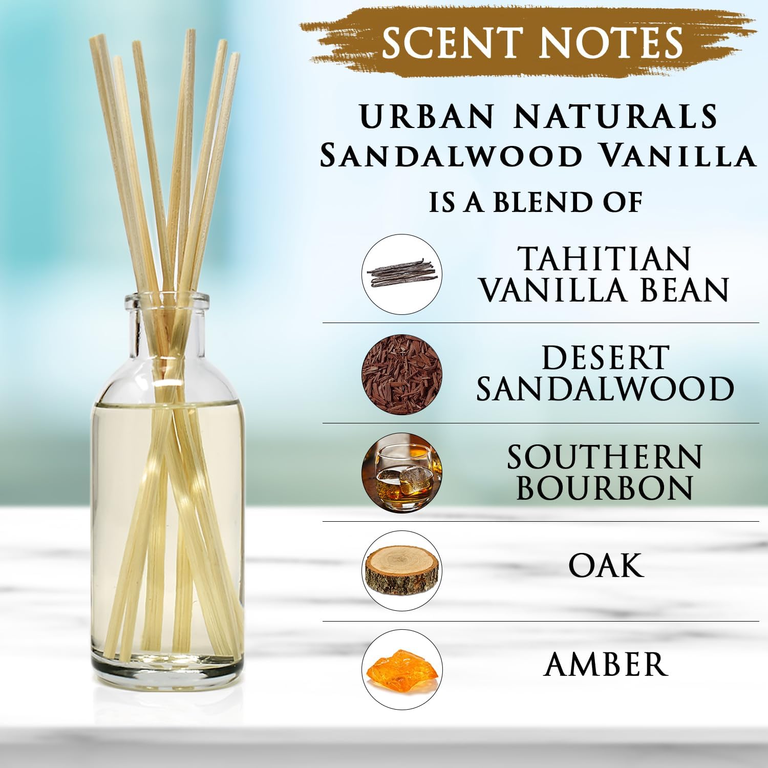 Urban Naturals Sandalwood & Vanilla Reed Diffuser Oil Gift Set | Tahitian Vanilla intermeshes & Desert Sandalwood Mingle to Create a Southern Bourbon Scent! | Great Idea