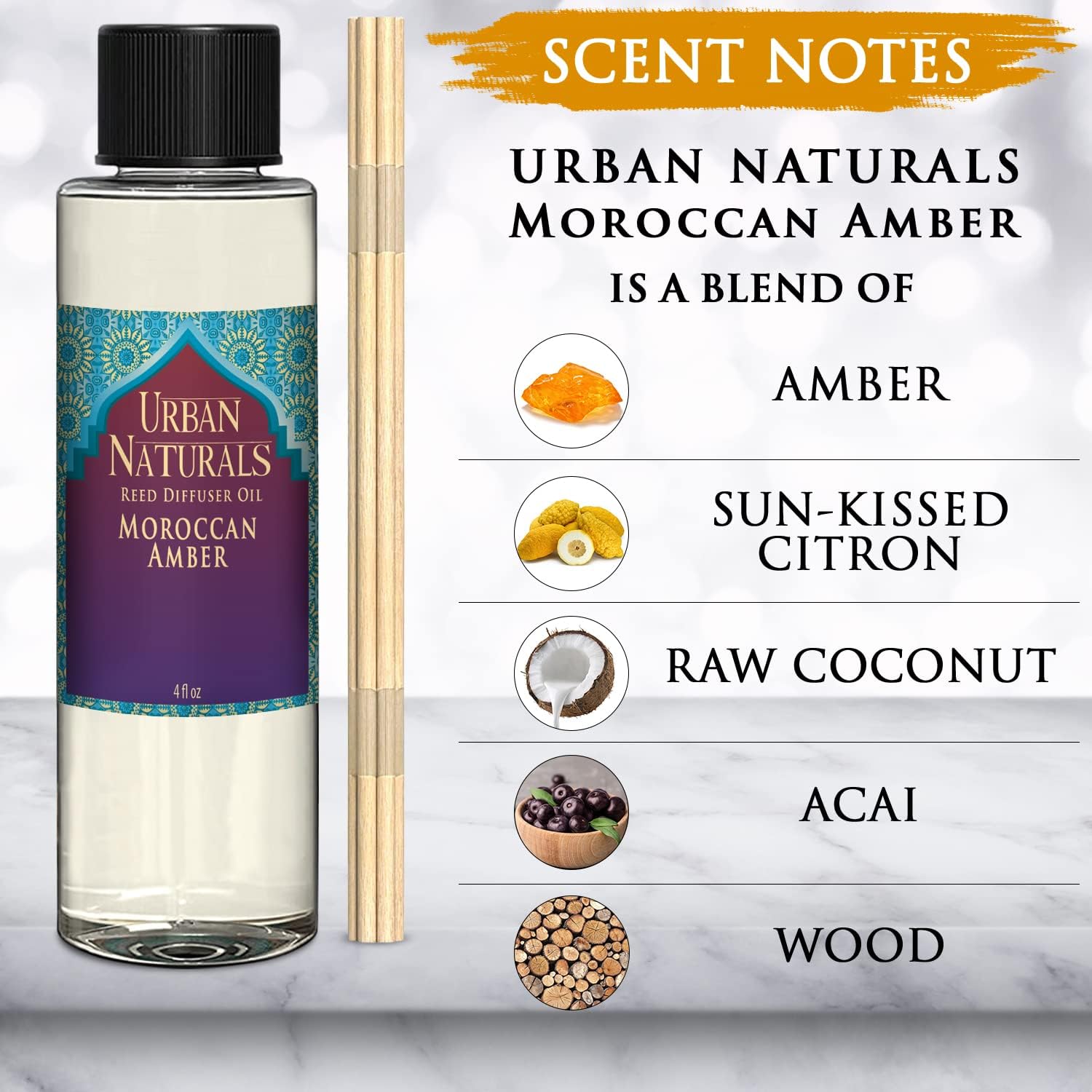 Urban Naturals Moroccan Amber Reed Diffuser Refill Set | Includes a Free Set of Reed Sticks! 4 oz. | Great Gift Idea Home Fragrance Lovers!