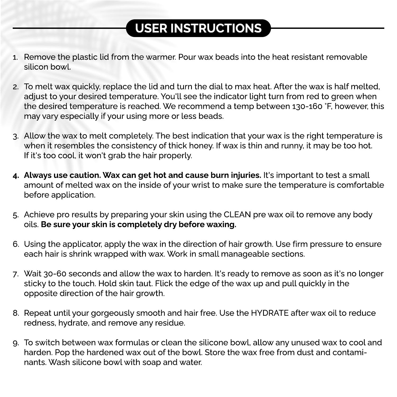 - EASY-TO-CLEAN WAX KIT: Our non-stick, silicone bowl is a better wax pot and makes cleaning a breeze. Just heat up your hard wax beads, enjoy the smooth body wax, and clean it up in no time.