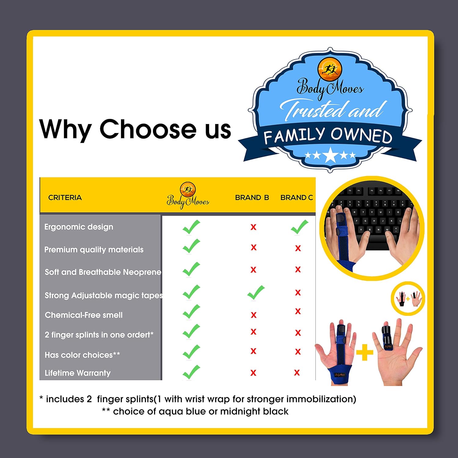 BodyMoves Finger splint and Finger extension splint trigger finger mallet finger broken finger post operative care Finger knuckle immobilization injury (aqua blue)