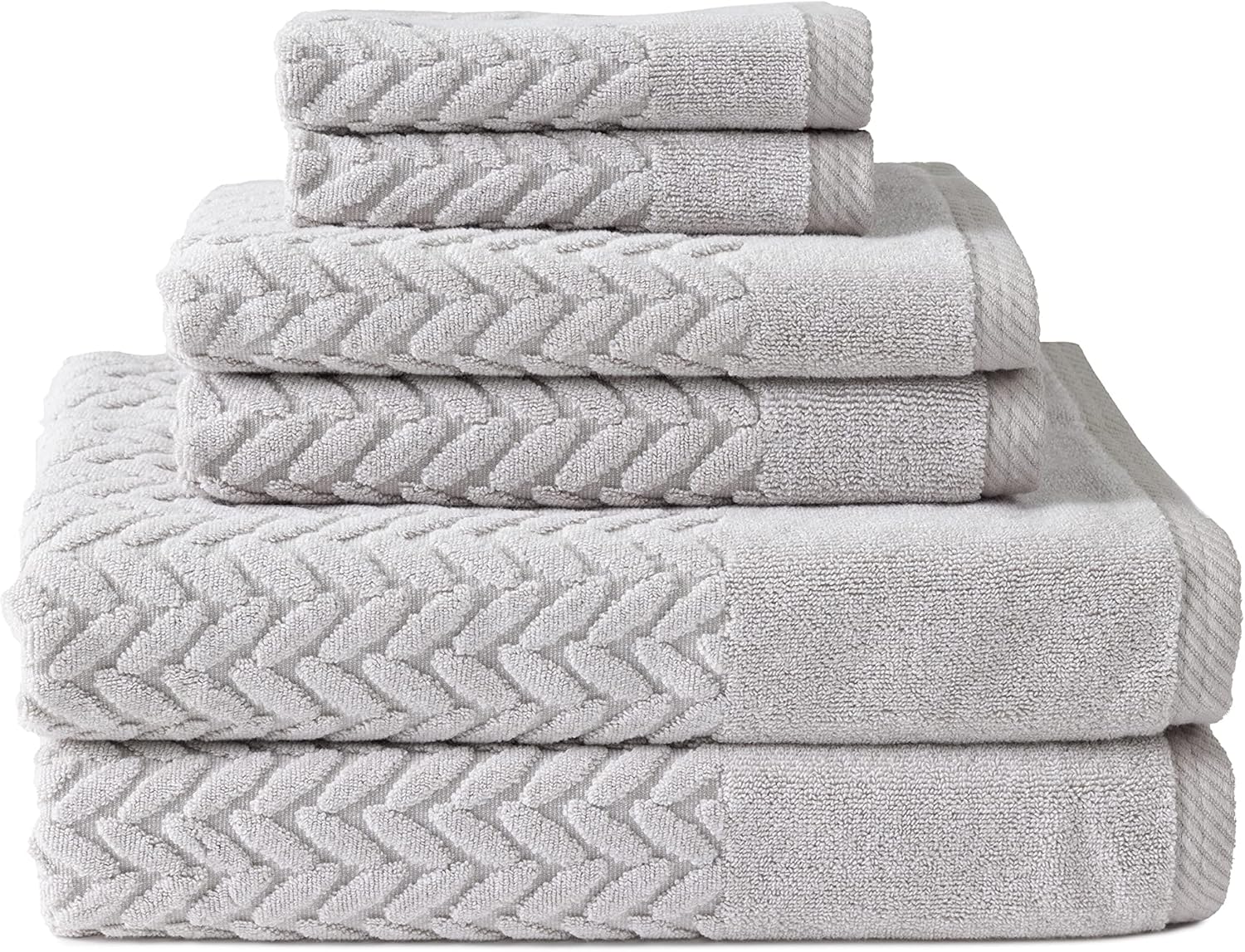 Texere 100% Organic Cotton Jacquard 650 GSM Premium Bath Towel Sets - Extra Absorbent Quick Dry and Plush, 2 Large Bath Towels, 2 Hand Towels, 2 Washcloths (Cable, Light Taupe, 6 Piece)