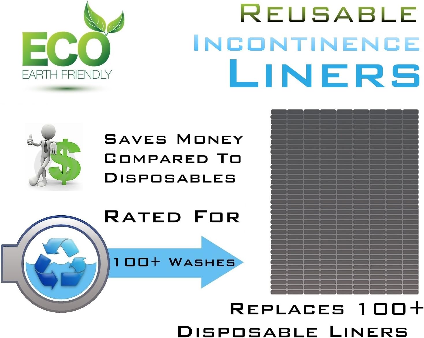 Comfort Finds Reusable Incontinence Liners - Unisex - Size 11" x 5" (Pack of 6, White)