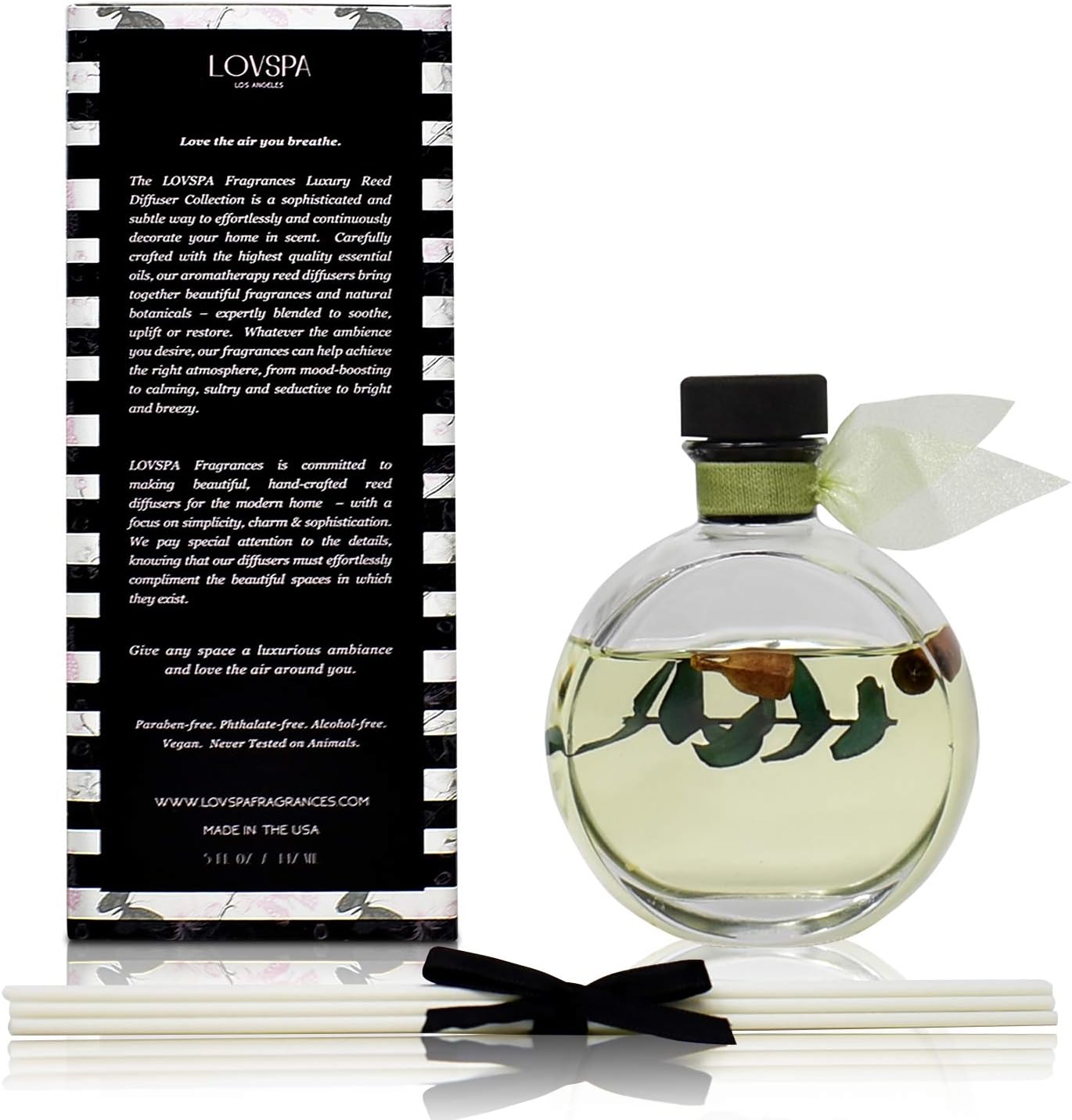 LOVSPA Reed Diffuser Set, Unwind Eucalyptus & Mint Scented Oil Diffuser with Sticks, Home Fragrance Accessories for Bathroom Shelf Decor, Aroma Diffusers for Home or Office Desk, USA Made