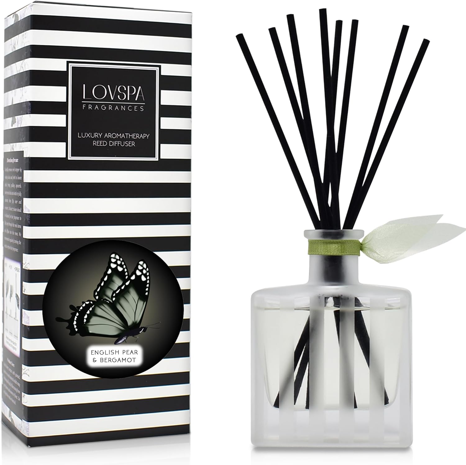 LOVSPA Reed Diffuser Set, Unwind Eucalyptus & Mint Scented Oil Diffuser with Sticks, Home Fragrance Accessories for Bathroom Shelf Decor, Aroma Diffusers for Home or Office Desk, USA Made