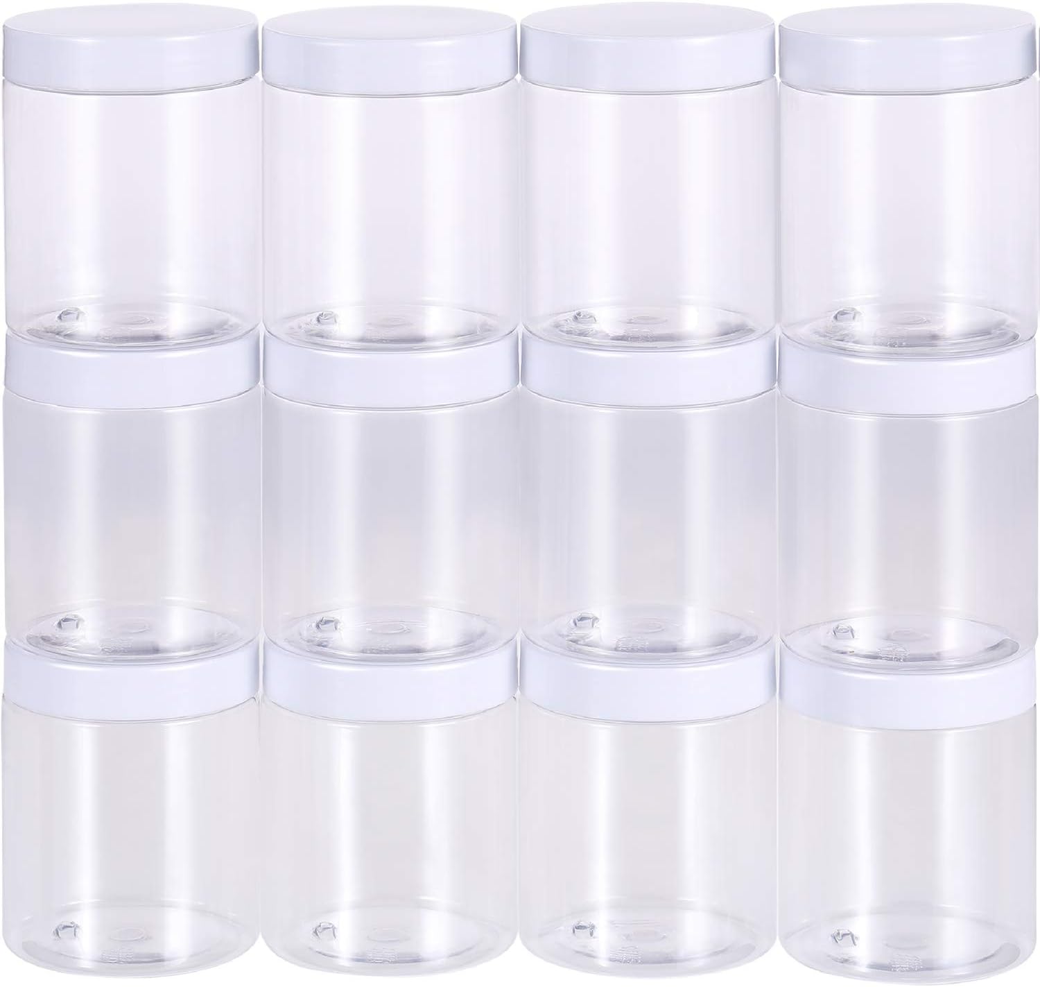 SATINIOR 12 Pack 10 oz Plastic Container Jars with Lids Round Clear Travel Cosmetic Container Jars for Toiletries, Lotion, Cream, Ointments, Makeup, Rhinestone, Samples, Kitchen Storage(White)