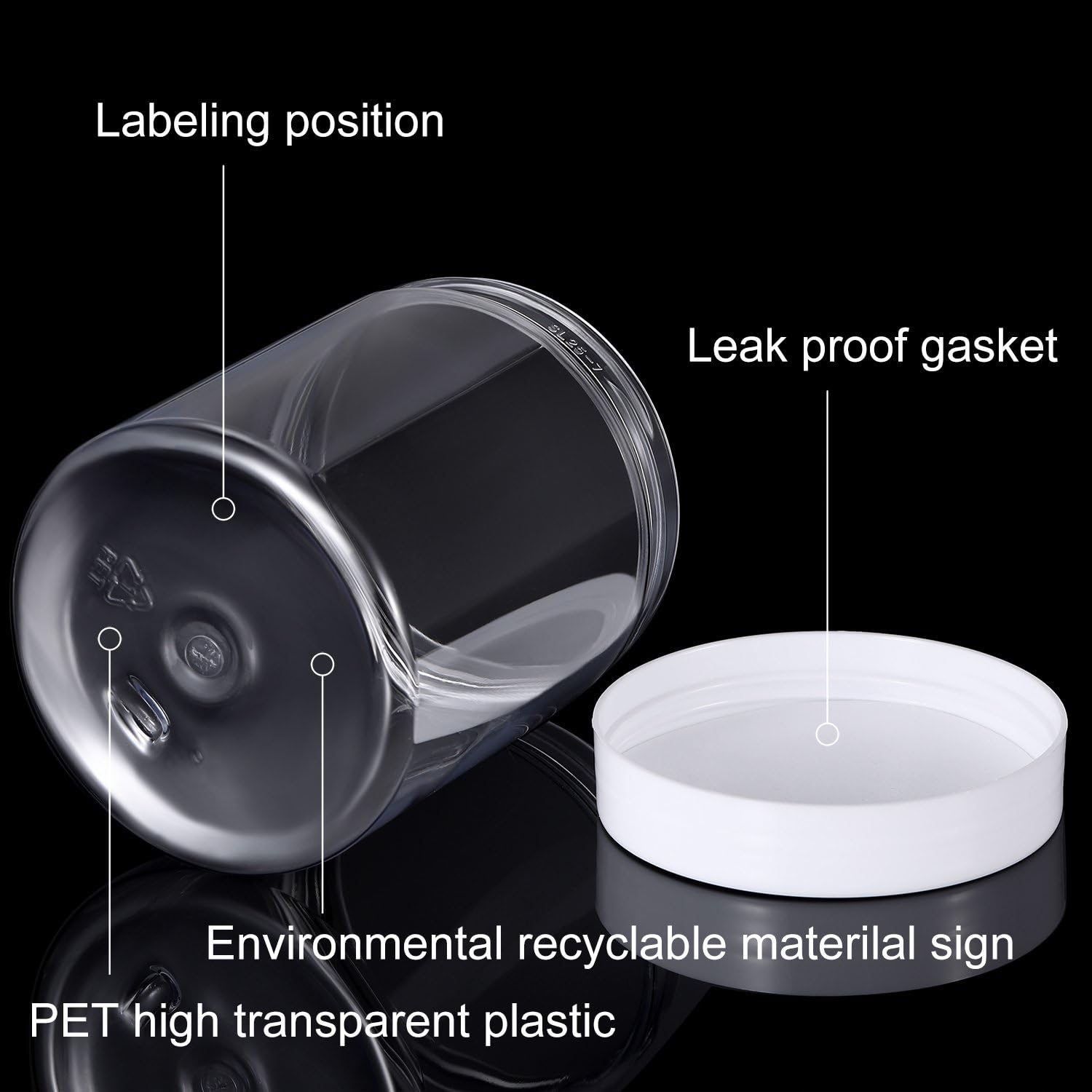 - Reliable Quality: these round containers adopt quality PET plastic, not easy to be broken; These straight sided jars allow for easy filling and removing