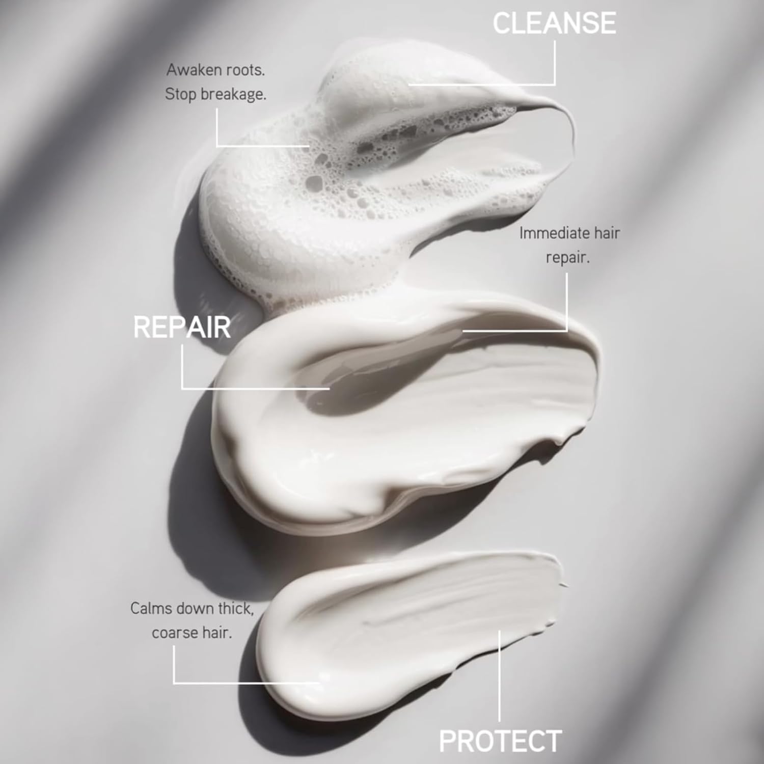 - CLEANSE AND REPAIR WITH PROFESSIONAL RESULTS: Formulated for all hair types – curly, color-treated, frizzy, or fine – this sample size shampoo and conditioner duo is clinically proven to reduce breakage by up to 89%. The sulfate-free, anti-frizz shampoo gently cleanses without stripping, while the deep, reparative conditioner smooths and detangles to restore softness and strength