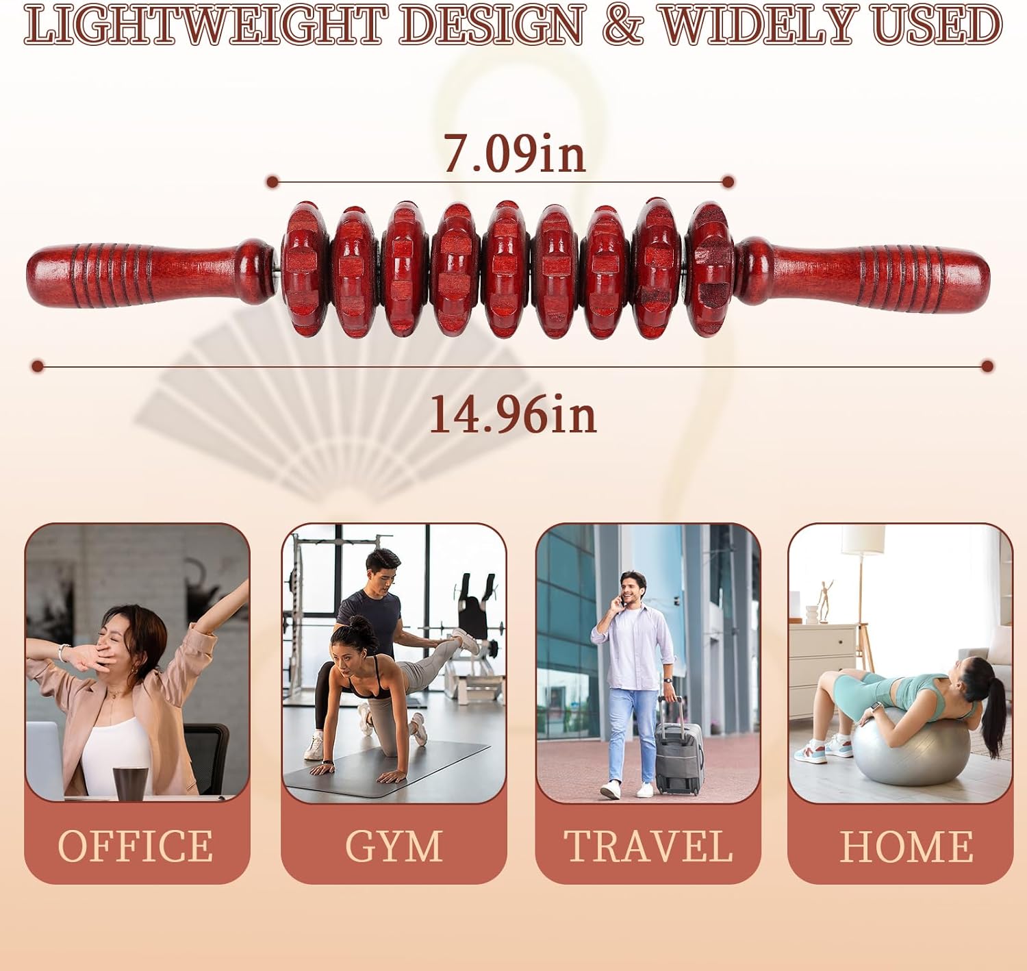 - Roller Design: Wooden manual massagers are equipped with 9 rotatable rollers, which are smooth and enduring. Non-slip handle, easy to hold, can effectively relax various parts of muscles, such as shoulders, waist, arms, legs, neck, feet, etc.