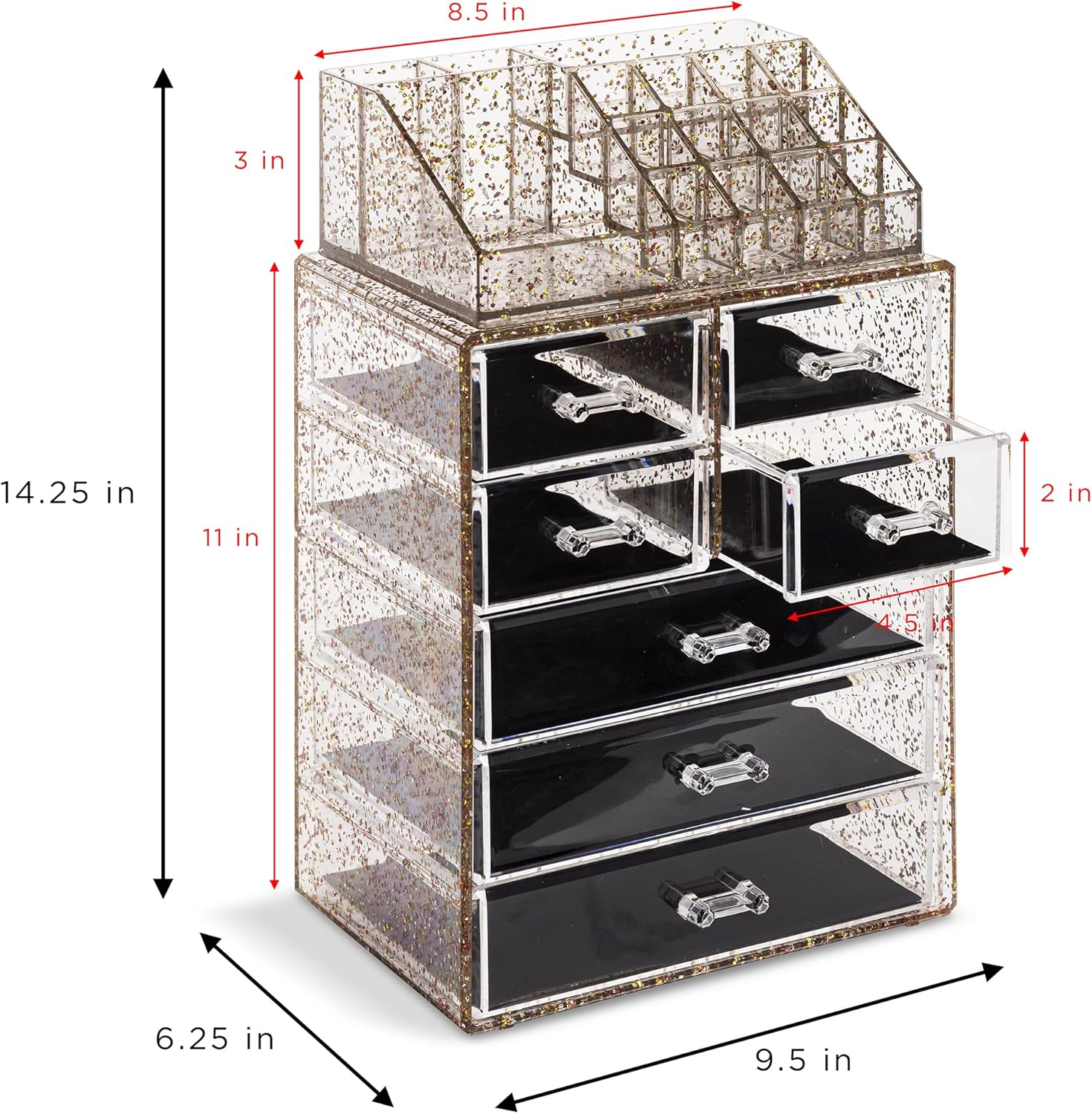 Sorbus Clear Cosmetic Makeup Organizer - Make Up & Jewelry Storage, Case & Display - Spacious Design - Great Holder for Dresser, Bathroom, Vanity & Countertop (3 Large, 4 Small Drawers) [Glitter]
