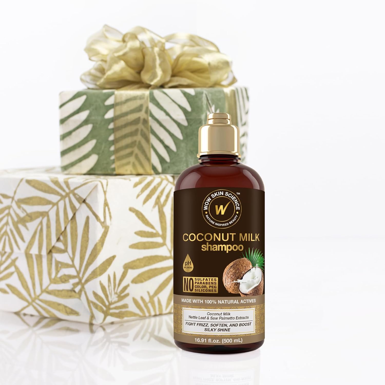 WOW Skin Science Coconut Oil Milk Shampoo - Hair Growth, Hydrating and Curl-Defining Formula for Curly, Wavy Hair for Men & Women - No Sulfates, No Parabens