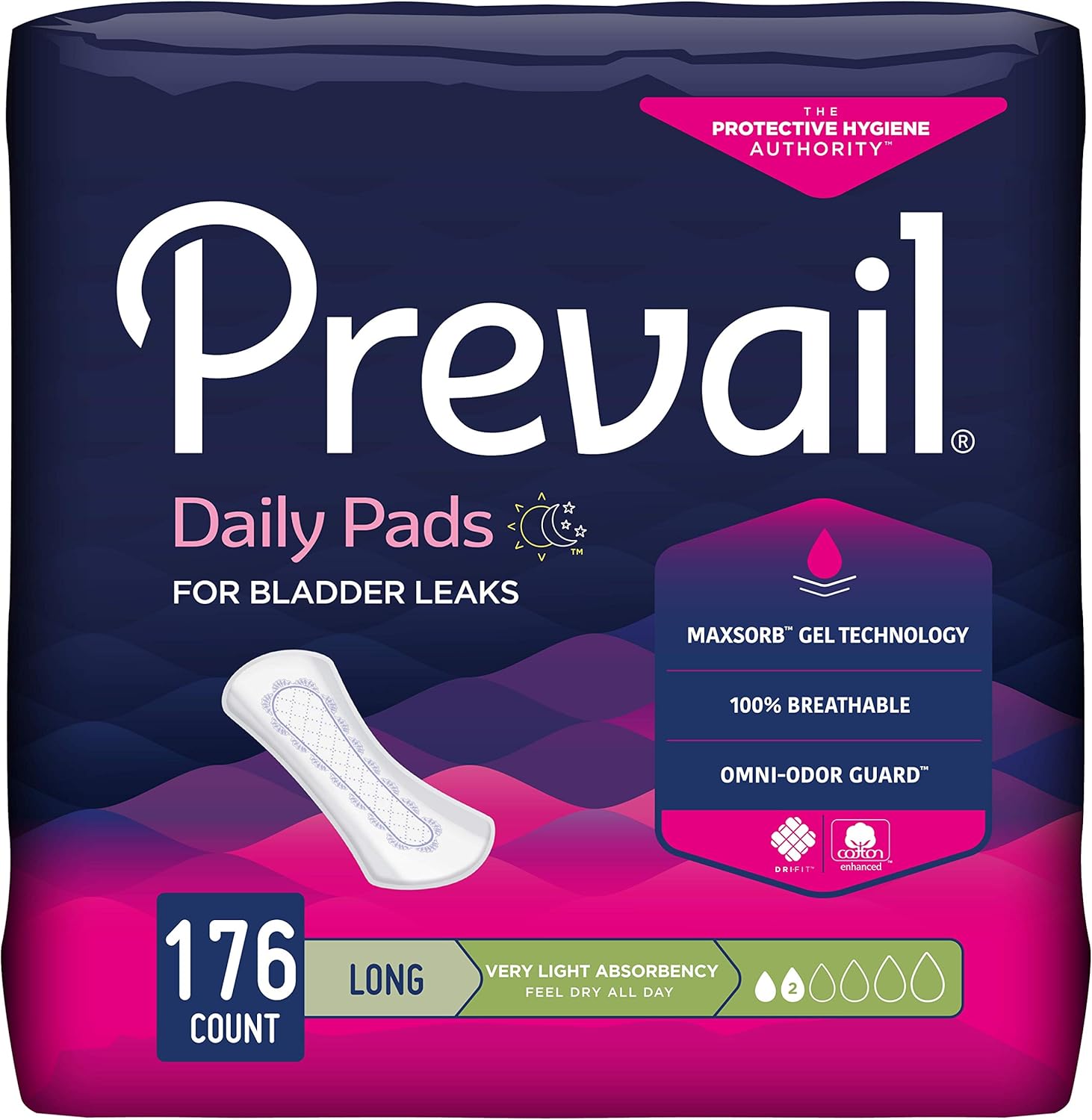 Prevail Proven - Prevail Incontinence Bladder Control Pads - Bladder Leak Pads - Very Light Absorbency, Long, 176 Count (4 Packs of 44)
