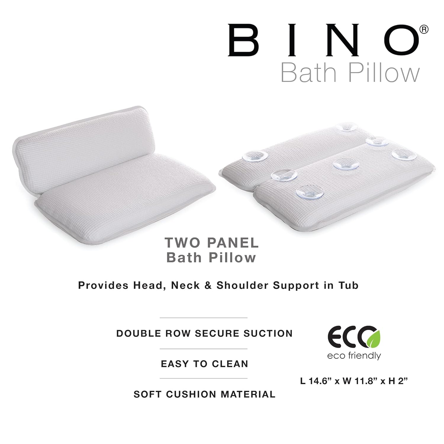 - NOT ALL SUCTION CUPS ARE CREATED EQUALLY! BINO's bath pillow features seven premium large suction cups that will hold in place on any smooth surface. Our proprietary suction cups will stick better then any other pillow on the market.