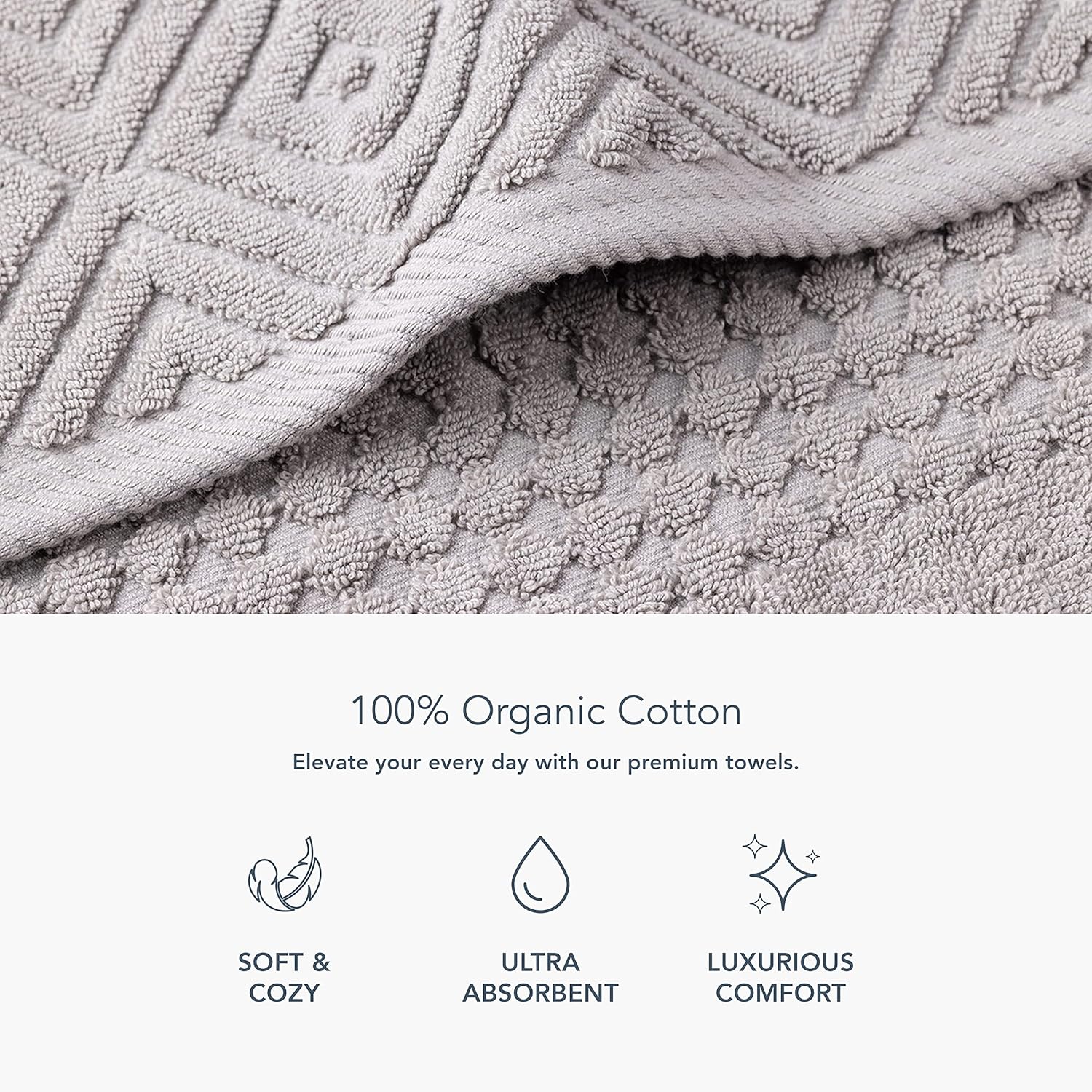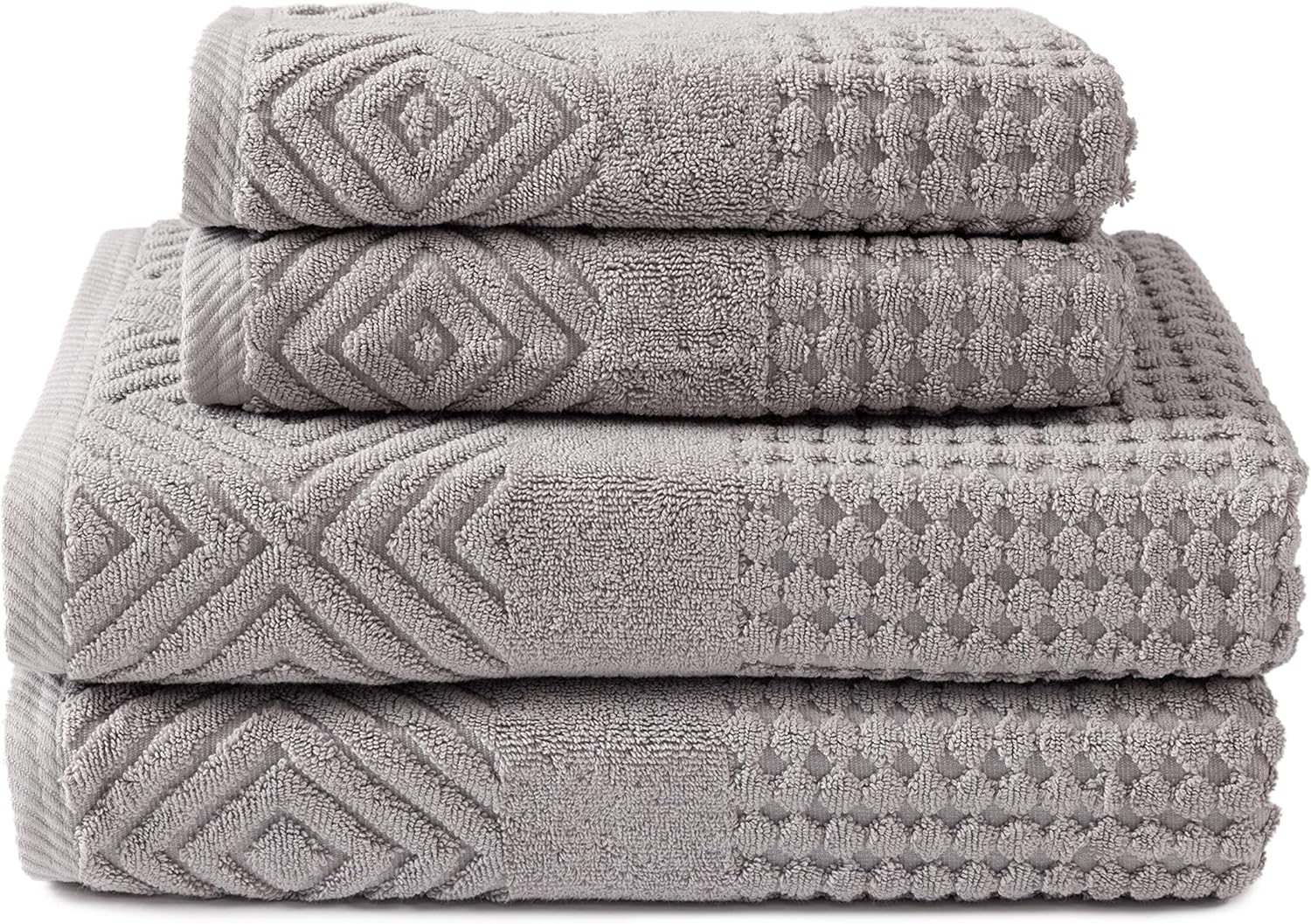 Texere 100% Organic Cotton Diamond Jacquard 700 GSM Luxury Bath Towel Sets - Ultra Soft and Absorbent Hotel and Spa Quality (Diamond, Cathedral Gray, 2 Bath & 2 Hand Towels)
