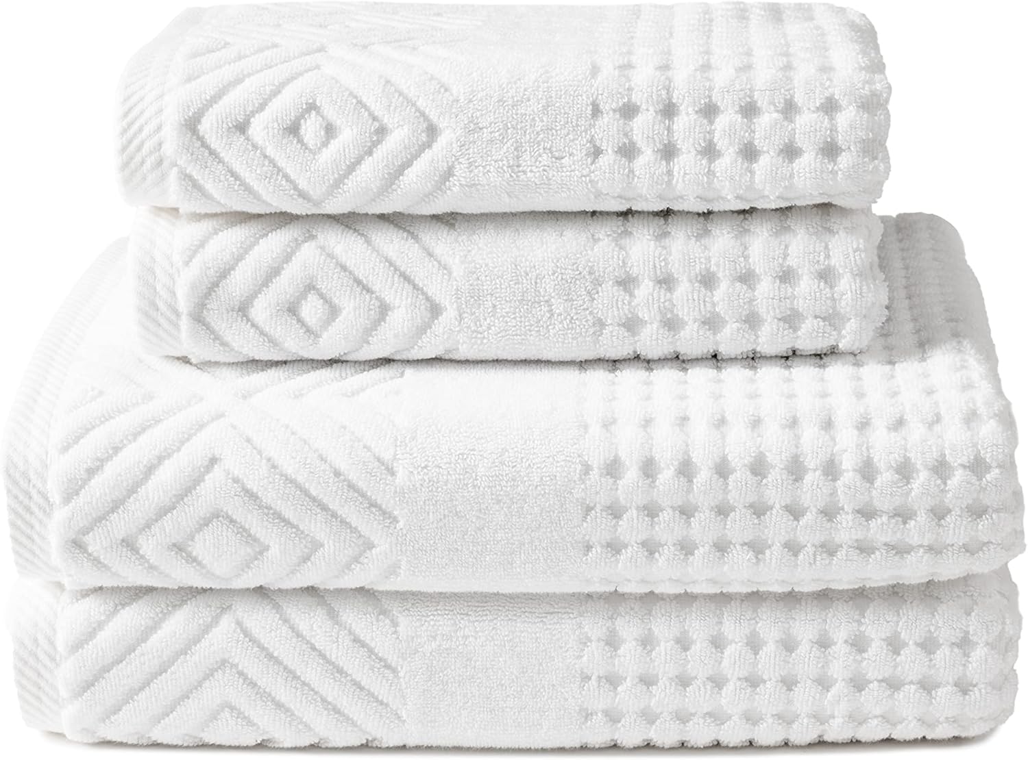 Texere 100% Organic Cotton Diamond Jacquard 700 GSM Luxury Bath Towel Sets - Ultra Soft and Absorbent Hotel and Spa Quality (Diamond, Bright White, 2 Bath & 2 Hand Towels)