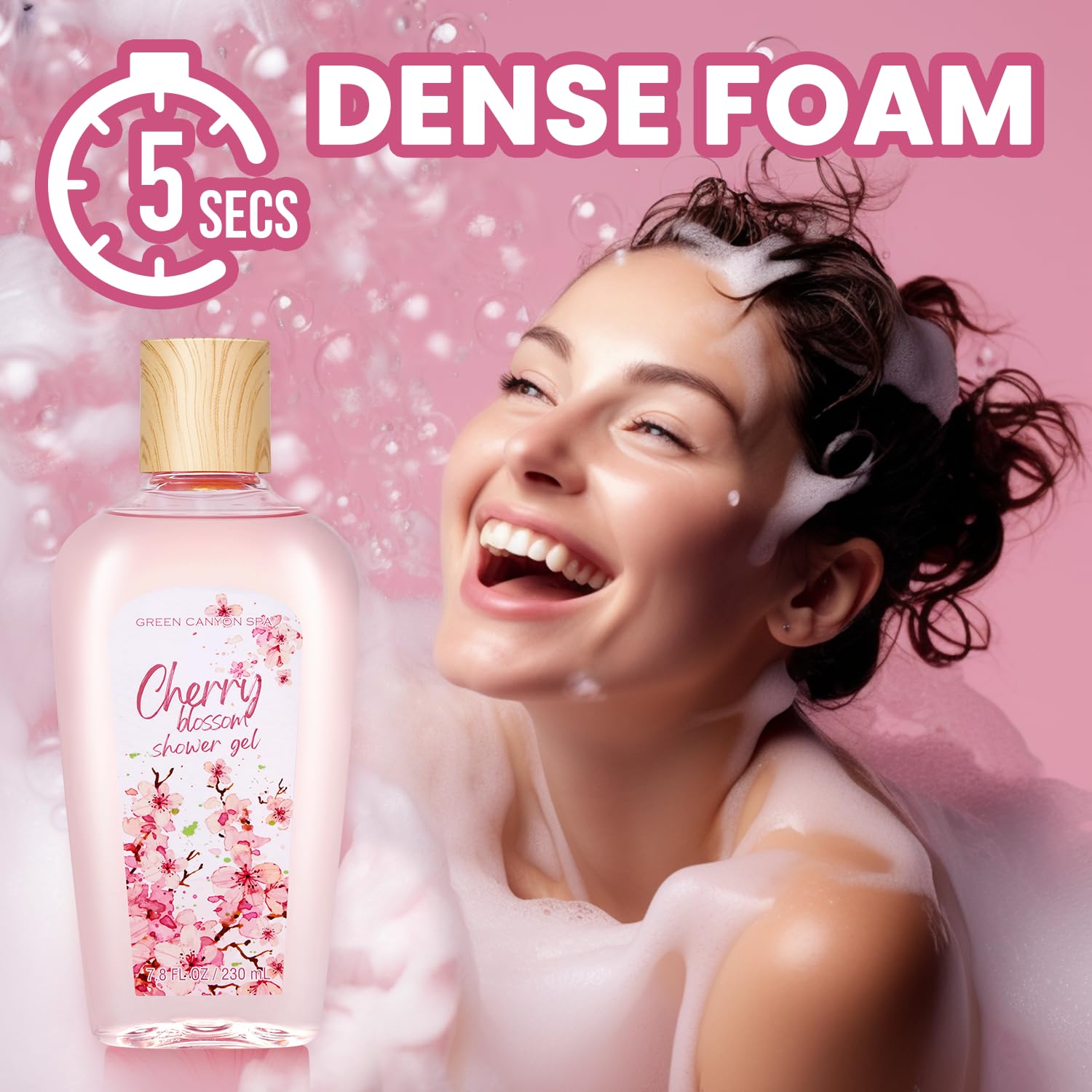 Green Canyon Spa Gift Baskets for Women Cherry Blossom Bath and Body Work Gift Set with Bubble Bath,Body Lotion Spa Gifts for Women Mothers Day Gifts for Mom