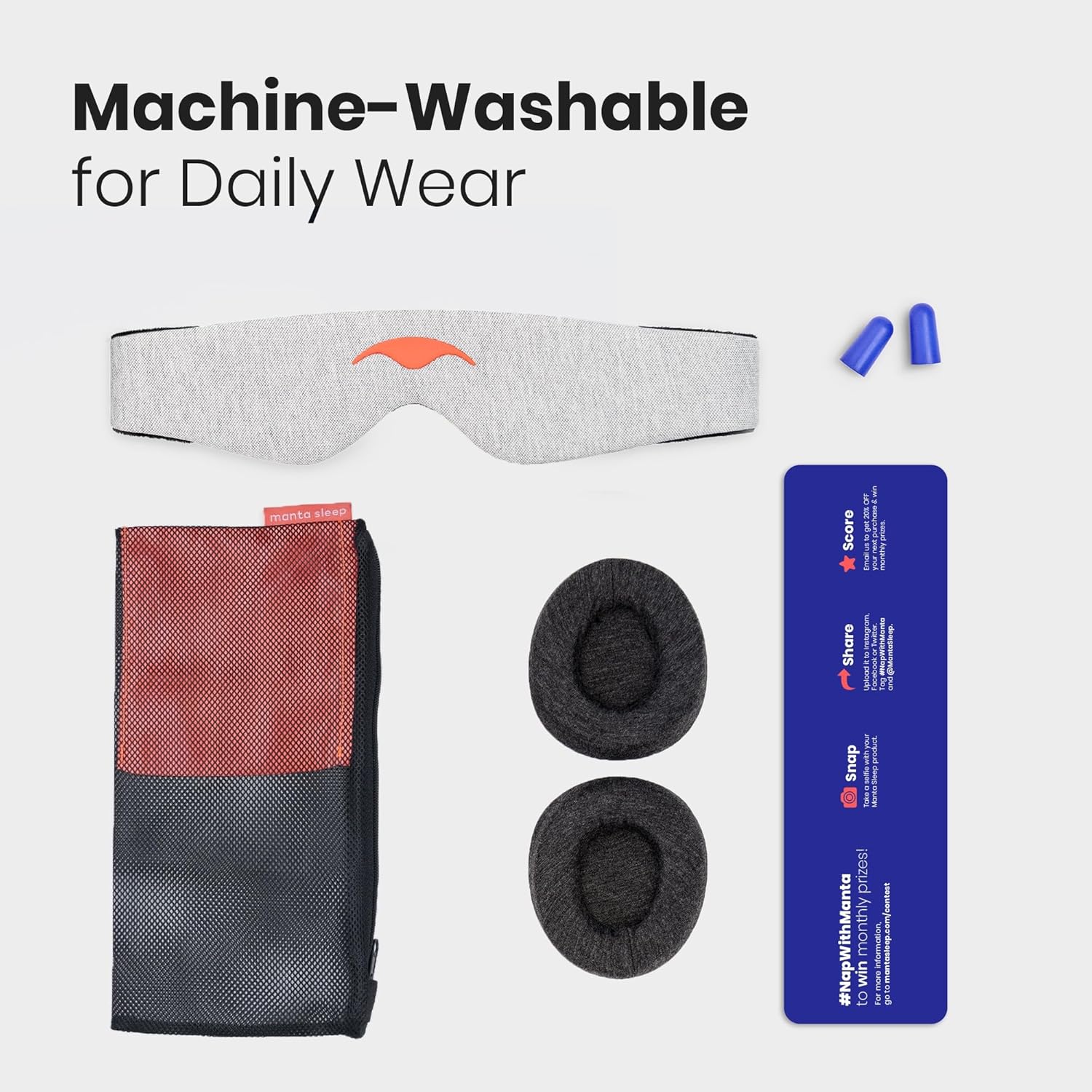 - 100% Machine Washable for Easy Care β Designed with your busy life in mind, your Manta is a breeze to clean. Simply use cold water, place the mask (eye cups and all) in the included carrying pouch, which doubles as a handy laundry mesh net, and then lay it flat to air dry. Wake up every day to a refreshingly pristine sleep experience.